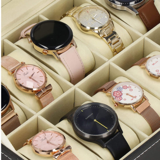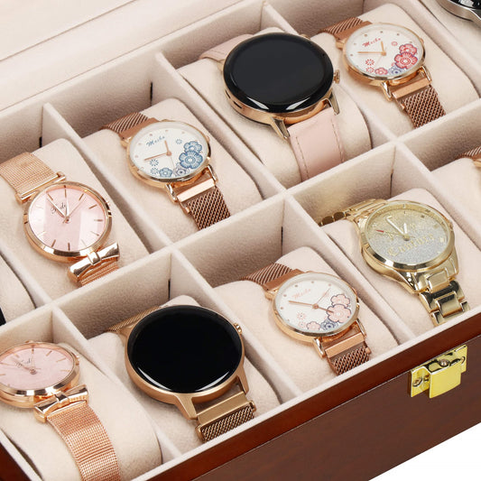 Laikrodžių dėžutės taip pat būna įvairių dydžių ir formų – nuo mažų dėžučių kelionei iki didelių organizatorių, talpinančių net 20 laikrodžių. Specialūs laikikliai ir pagalvėlės apsaugo laikrodžius nuo subraižymų, o stalčiai ar atskiri skyriai suteikia tvarkingą sistemą. Daugelyje dėžučių yra ne tik skyriai laikrodžiams, bet ir papildomos erdvės papuošalams: žiedams, auskarams, apyrankėms ar grandinėms.