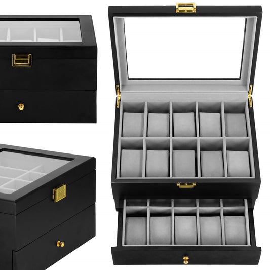 Laikrodžio ir papuošalų dėžutė juodos spalvos HA1062 30x20x8cm