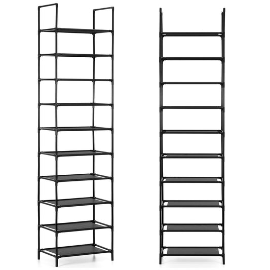 Metalinė batų lentyna, 10 lygių, vertikali batų spintelė 178 cm, juoda