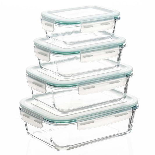 Maisto laikymo indeliai, virtuviniai, su dangčiais, 4 vnt., stikliniai, skaidrūs