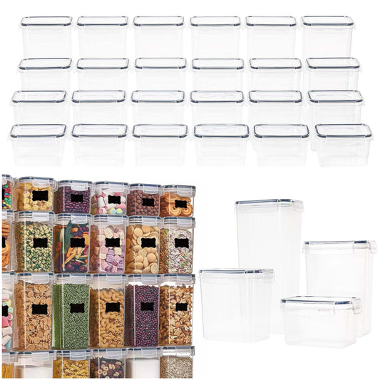 Indeliai, virtuvės organizatoriai maistui, 24 vnt. rinkinys su lipdukais, skaidrūs