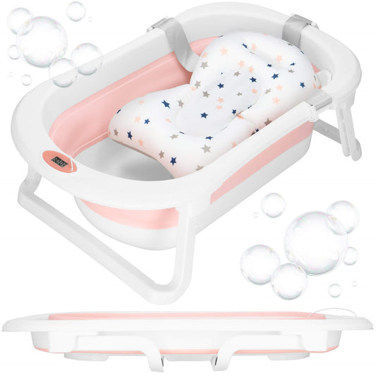 Nešiojama kūdikio vonelė SB0061 40 L balta-rožinė su kamščiu ir termometru