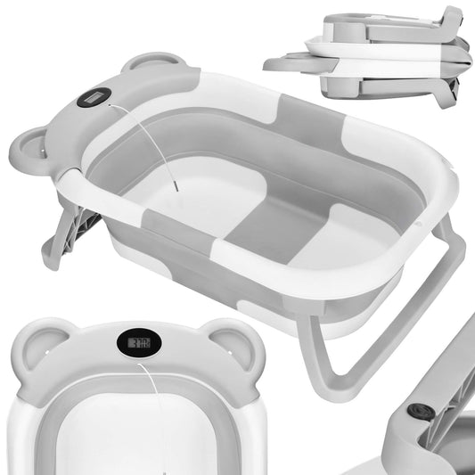 Kūdikio vonelė SB0062, silikoninė, su kamščiu ir termometru, 27,5 L, nešiojama, balta-pilka