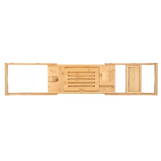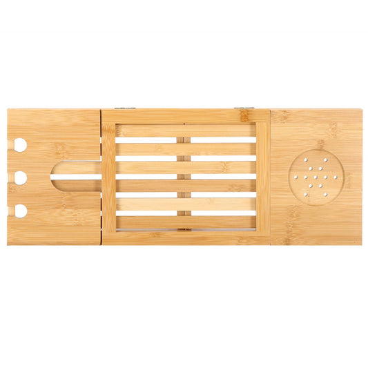 Modernios bambukinės vonios lentynos – pertvaros yra puikus pasirinkimas tiems, kurie mėgsta atsipalaiduoti vonioje. Šios lentynos pritaikytos pasidėti knygą, taurę vyno ar arbatos puodelį, planšetę ar telefoną. Natūrali bambuko medžiaga atspari drėgmei, o reguliuojamas plotis leidžia pritaikyti lentyną skirtingo dydžio vonioms.