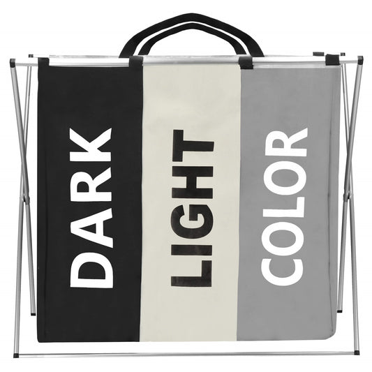 Sulankstomas skalbinių krepšys su trimis SVA0099 146 L skyriais juoda/smėlio/pilka