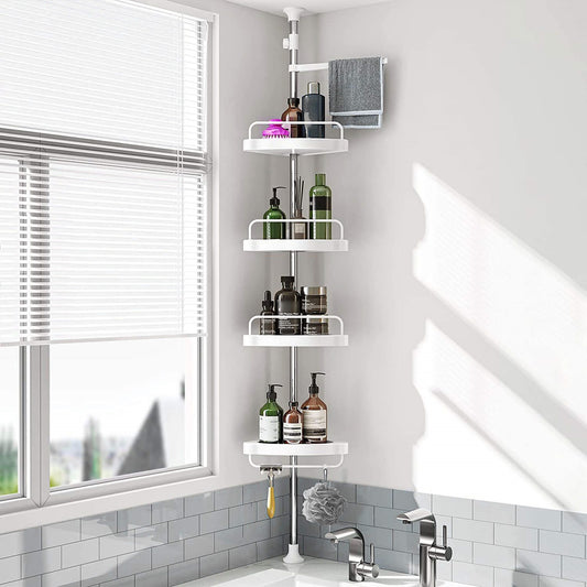Kampinė teleskopinė vonios lentyna su 4 lygiais SVA5176, balta, dušui