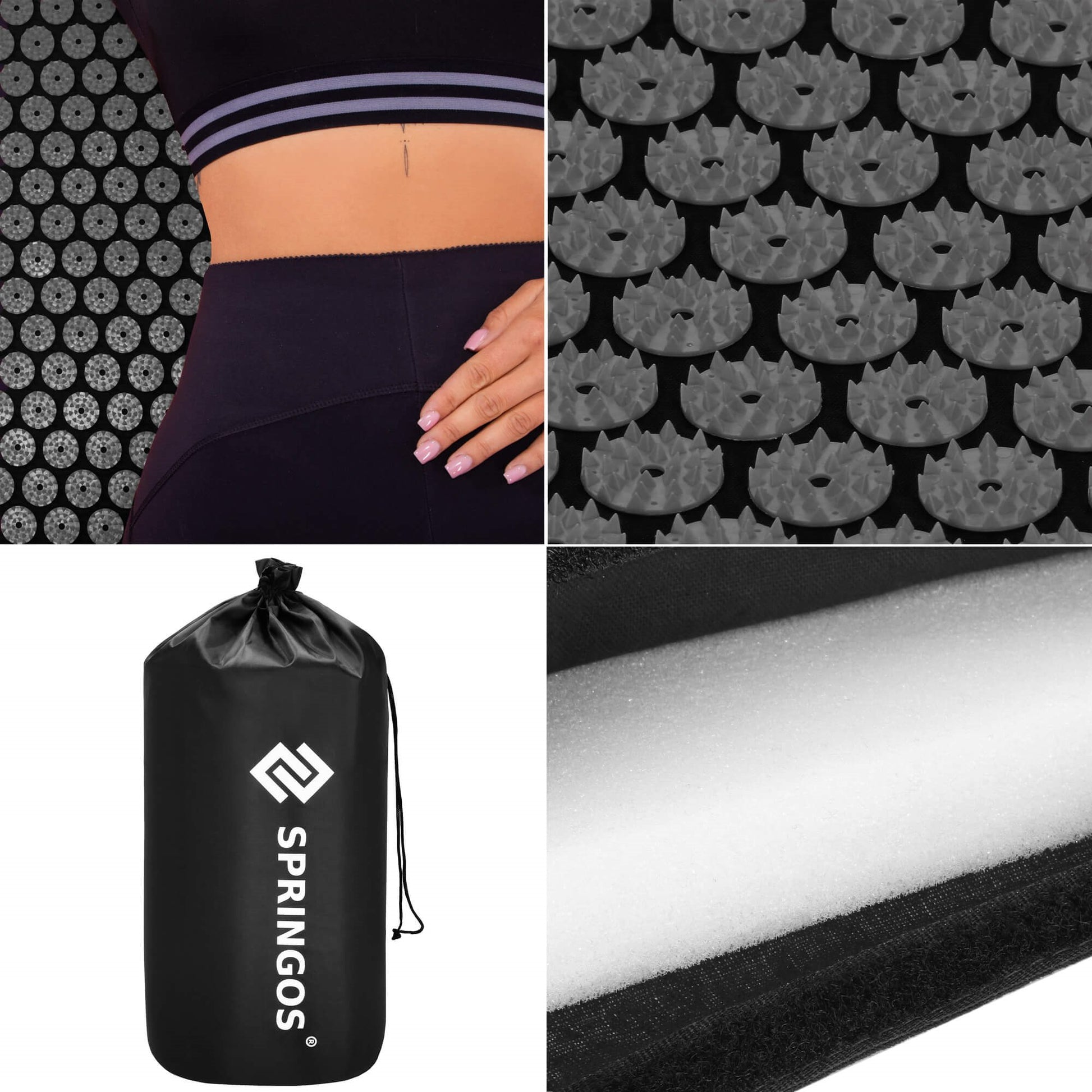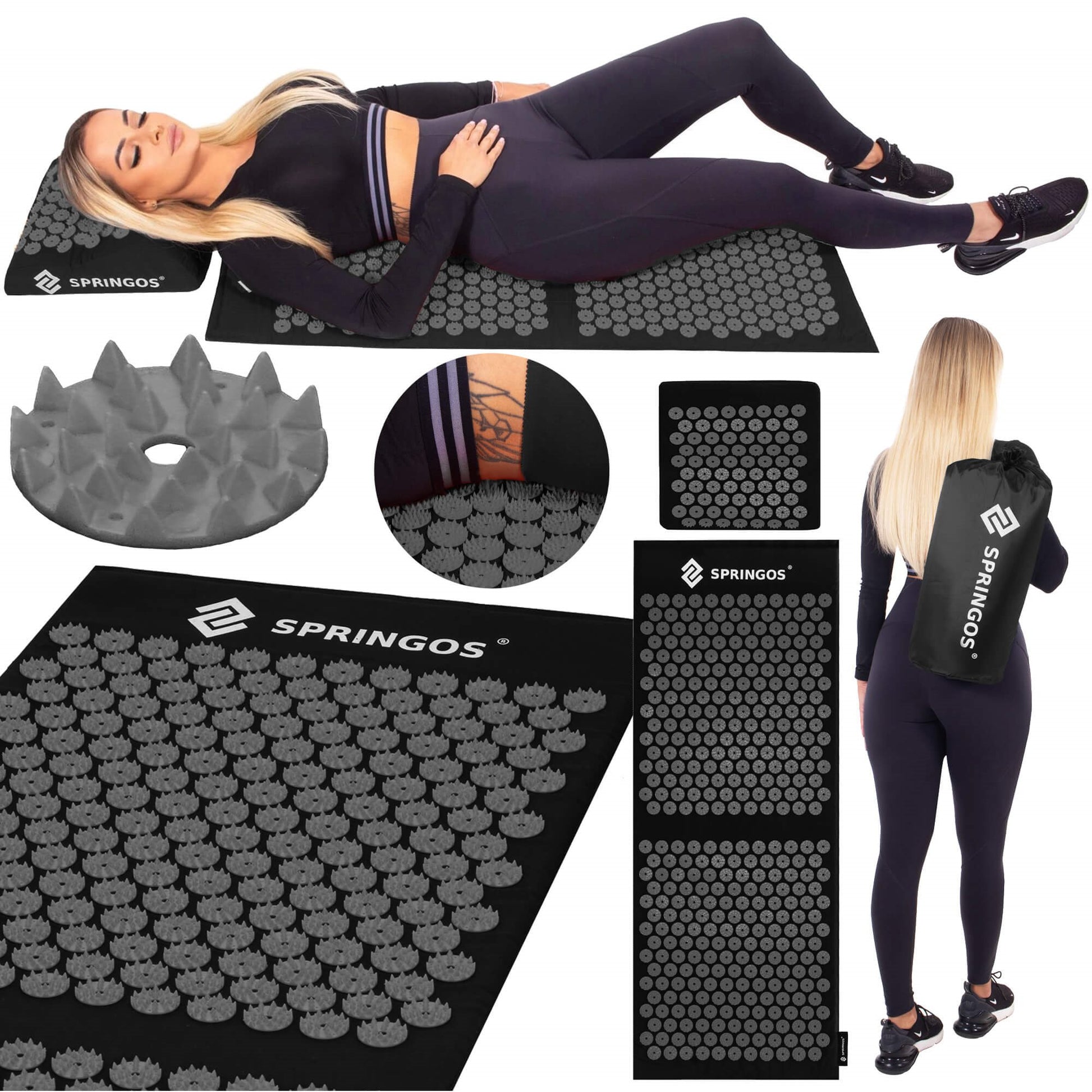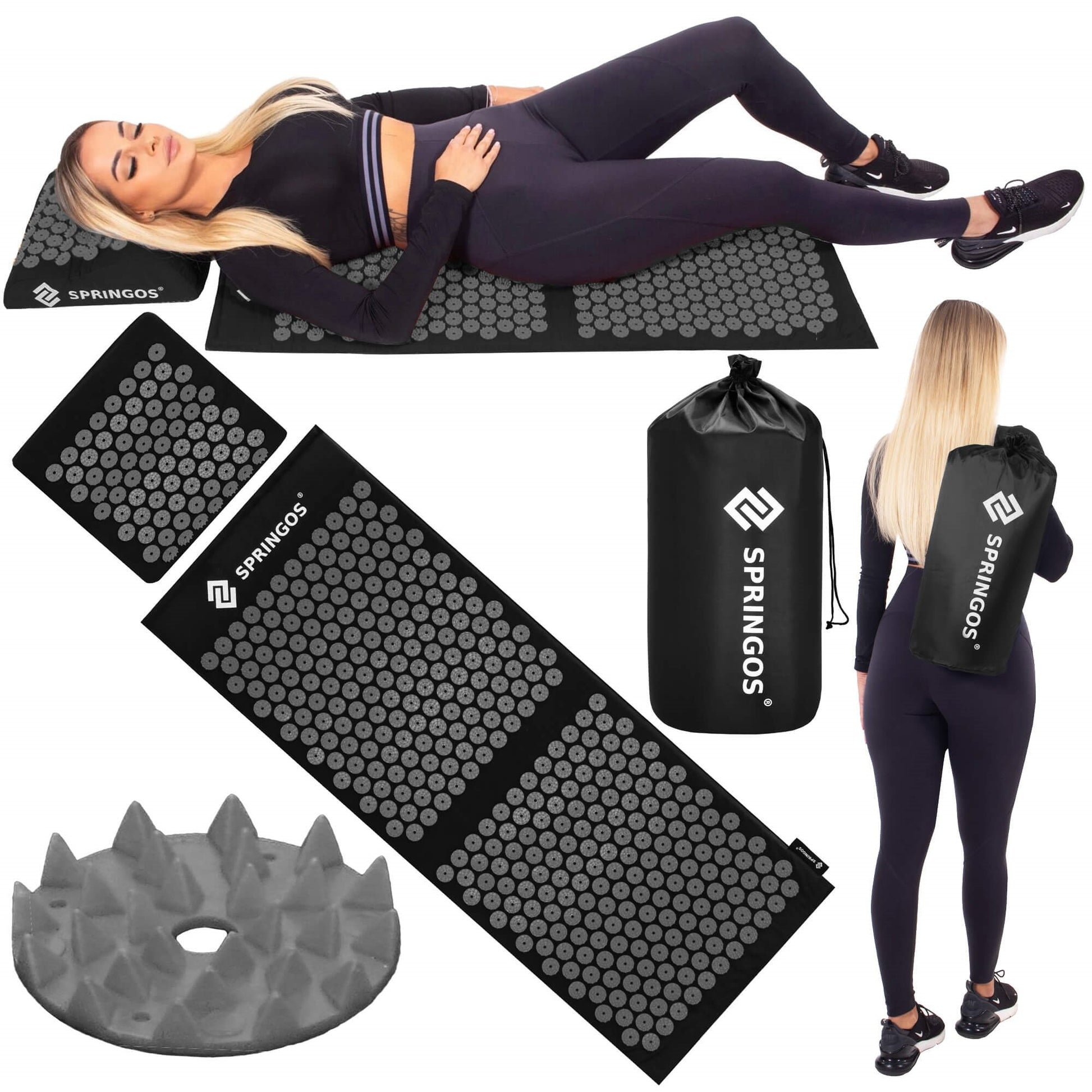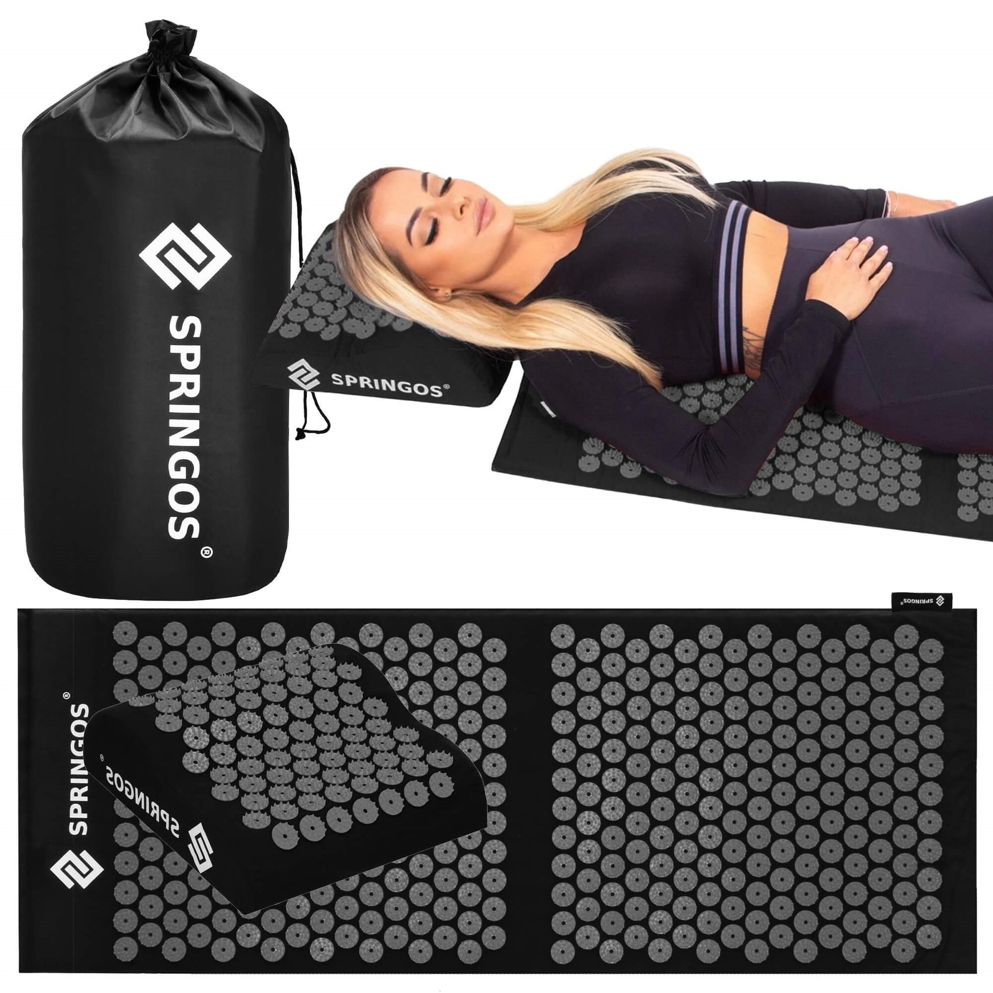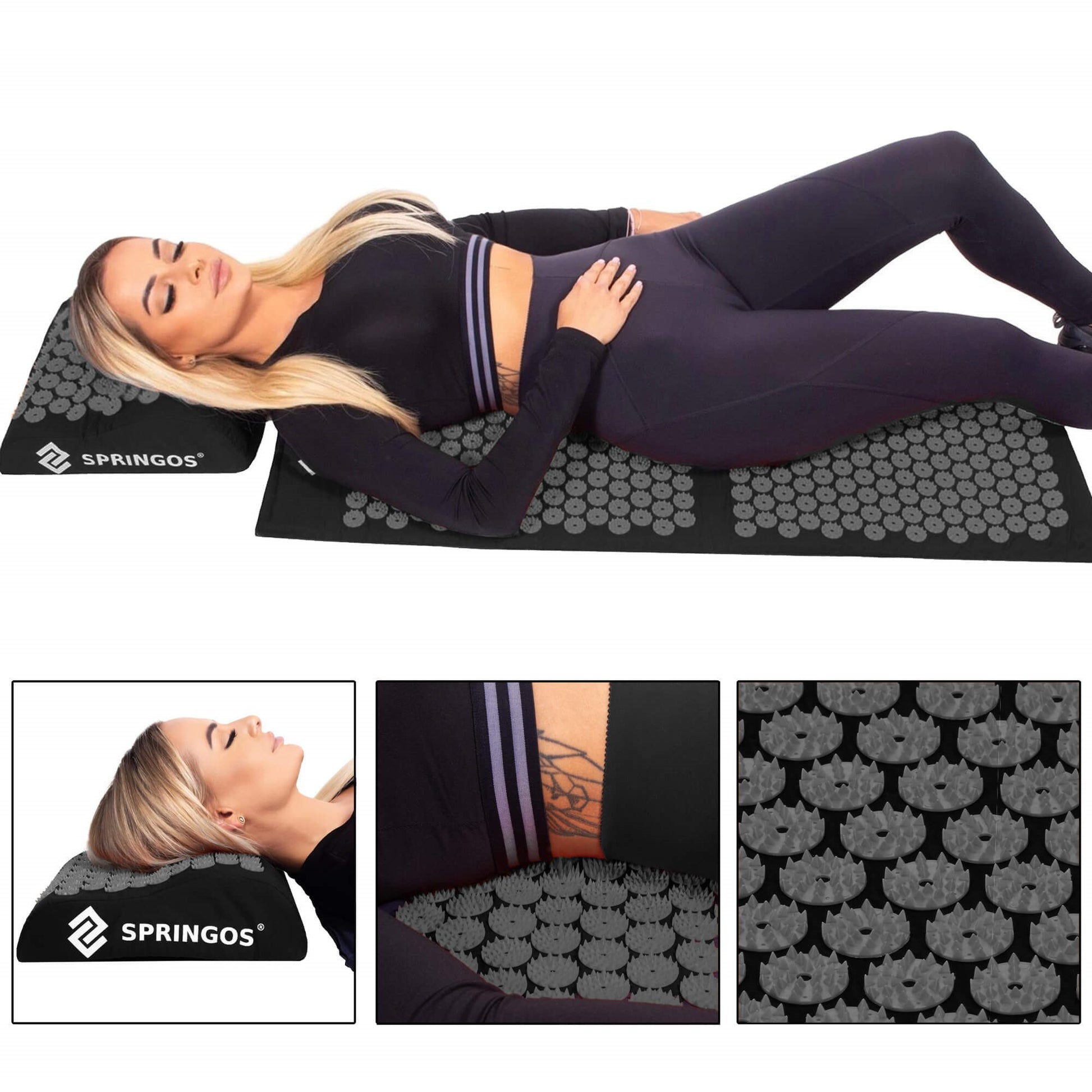 Akupresūros kilimėlis su dygliuota pagalvėle, kūno stimuliatorius, atpalaiduojantis masažuoklis, SA0153 juoda