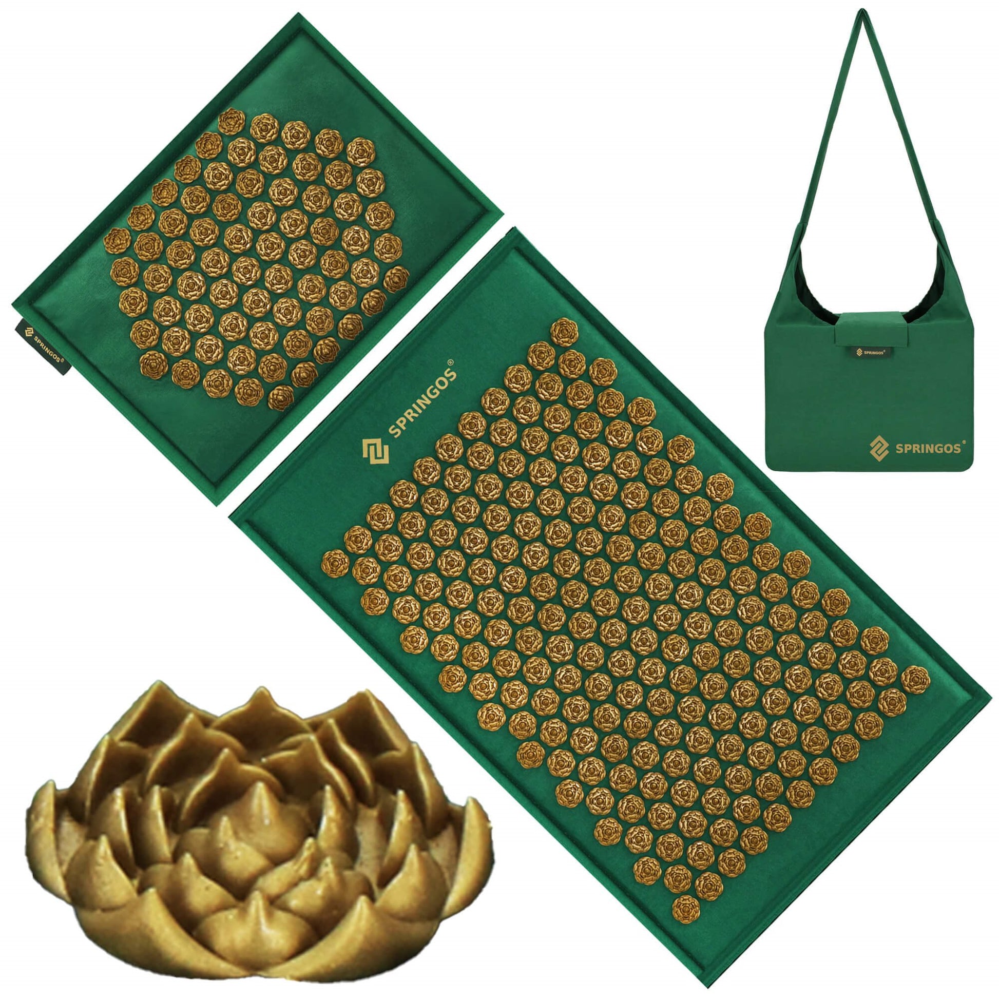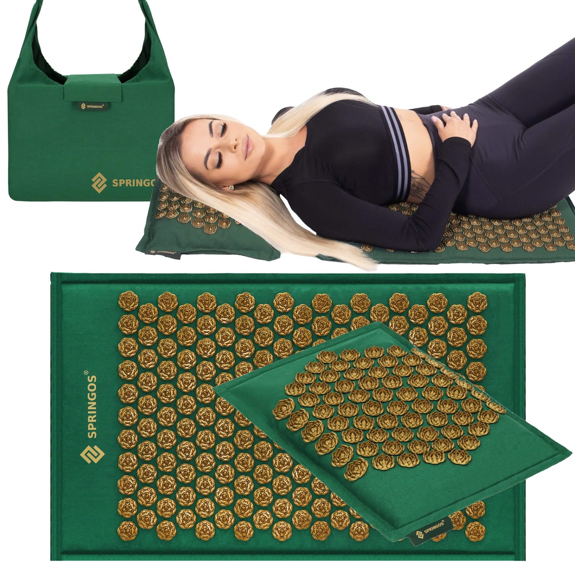 Privalumai: ✅ Tinkamas dydis – 65x40 cm kilimėlis dengia visą nugarą, o 40x29 cm pagalvė puikiai priglunda prie kaklo ir galvos, užtikrindama maksimalų atsipalaidavimą. ✅ Patvarios, kokybiškos medžiagos – kilimėliai pagaminti iš natūralių medžiagų: lino ir kokoso pluošto ✅ Funkcionalus dangtis – palengvina tiekimo sandėliavimą, tiekimą, užtikrinantį komfortą bet kokioje situacijoje. ✅ Lengva palaikyti švarą – užvalkalu galima lengvai skalbti, todėl kilimėlį ir pagalvę lengviau palaikyti švarius. Štai dėl sveikatos priežasčių, kodėl reikia atpalaiduoti akupresūros kilimėlį: padeda sumažinti raumenų įtampą, gerina kraujotaką, regeneraciją po fizinio krūvio, todėl jis populiarus tarpų atpalaiduoti ir sumažinti nervinės įtampos. pagerina miego sutrikimą ir raumenų skausmus mažina kaklo, pečių ir stuburo skausmus padeda sumažinti raumenų ir kaulų sistemos būklę, padeda sumažinti celiulitą gerina galvos odos kraujotaką, o tai skatina plaukų augimą. kokoso pluoštas Komplekte: kilimėlis, pagalvėlė, krepšys Kilimėlio matmenys: 65 x 40 cm Pagalvės matmenys: 40 x 29 cm Nuimamas kilimėlis ir pagalvėlių užvalkalai CE sertifikatas Pridedamos instrukcijos Reguliariai naudojant kūno masažui sukurtas gali produktas skirtas prie gilaus kūno atsipalaidavimo jausmo. Matmenys Kilimėlis: Ilgis: 65 cm Plotis: 40 cm Storis: 2 cm Pagalvė: Plotis: 29 cm Ilgis: 40 cm Aukštis: 5 cm Sandėliavimo krepšys: Ilgis (vertikaliai) matuojamas plokščias: 40 cm Plotis (horizontai) cm plotas matuojamas plokščias: 50 cm, Rankena: lenkto82 40 x 30 x 12 cm Rozetė su smaigaliais: Skersmuo: 2,6 cm Aukštis: 5 mm Pagrindo storis be spyglių: 2 mm Spyglių informacija: Spyglių skaičius vienoje rozetėje: 25 Rozečių skaičius ant kilimėlio: 200 Spyglių skaičius ant kilimėlio: 5000 Rozečių skaičius ant pagalvės: 70 Spyglių skaičius ant pagalvėlės: 1750 Papildoma informacija: Lininiai kilimėlio ir pagalvių užvalkalai pagaminti iš tamsių žalių medžiagų, su prisiūtomis rozetėmis su spygliukais matinio aukso spalvos. Ant viršelių prisiūtos šoninės etiketės su logotipu, + logotipas atspausdintas ant kilimėlio (logotipo spalva: smėlio spalvos). Rozetės su lotoso žiedų formos spygliais. Užvalkalai gali būti nuimami ir skalbiami, užsegami Velcro. Rankų plovimas. Kilimėlio dangtelyje yra dvi mažos pakabinimo kilpos. Lininis užvalkalas patogaus pečių krepšio pavidalu, su Velcro užsegimu. Gaminys skirtas asmeniniam naudojimui, neskirtas medicinos ar komerciniams tikslams. Produktas nėra medicinos prietaisas ir naudojamas jokiai ligai gydyti. Produktas turi aštrius išsikišimus, todėl jį reikia laikyti vaikams nepasiekiamoje vietoje. Kontraindikacijos naudoti gydymą: nėštumas ir žinutė neužgijusios žaizdos ir atsigavimas po procedūrų osteoporozės antikoaguliantus pėdų ar sąnarių patinimas *Kilimėlio nerekomenduojama naudoti jaunesniems nei 16 metų asmenims. **Jei gerain kilimėliu jaučiate sukelia diskomfortą ar skausmą, nedelsdami nutraukite jo naudojimą. Kaip naudoti: Pradėkite naudoti kilimėlį gulėdami ant jo, vilkėdami ploną drabužių sluoksnį (pvz., marškinėlius). Iš pradžių galite jausti nedidelį diskomfortą. Kai tik pripratote, sistemingai padidina naudojimo laiką. Kai tavo kūnas pri prie kilimėlio, gali padėti tiesiai ant plikos odos. Kilimėlį galima naudoti ir ant jo stovint ar sėdint. Kad kilimėlis suteiktų norimą efektą, jį reikia naudoti sistemingai. Rekomenduojamas naudojimo laikas yra mažiausiai 5 minutės. Kai priprasite prie kilimėlio, ilginkite jo naudojimo laiką. Laikymas ir priežiūra: Laikykite kilimėlį pridedamame atitinkamame maišelyje. Sukite kilimėlį taip, kad rozetės būtų nukreiptos į vidų, kad nesusidėvėtų. Laikykite rinkinį sausoje ir vėdinamoje vietoje, vaikams nepasiekiamoje vietoje. Kilimėlį reikia nuplauti švelniai ir rankomis, naudojant drungną vandenį ir muilą. Produktas turi būti gerai išdžiovintas. Neplaukite mašinoje ir nenaudoja džiovintuvo. Nuplaukite pridedamą užvalkalą pagal etiketėje pateiktas instrukcijas.