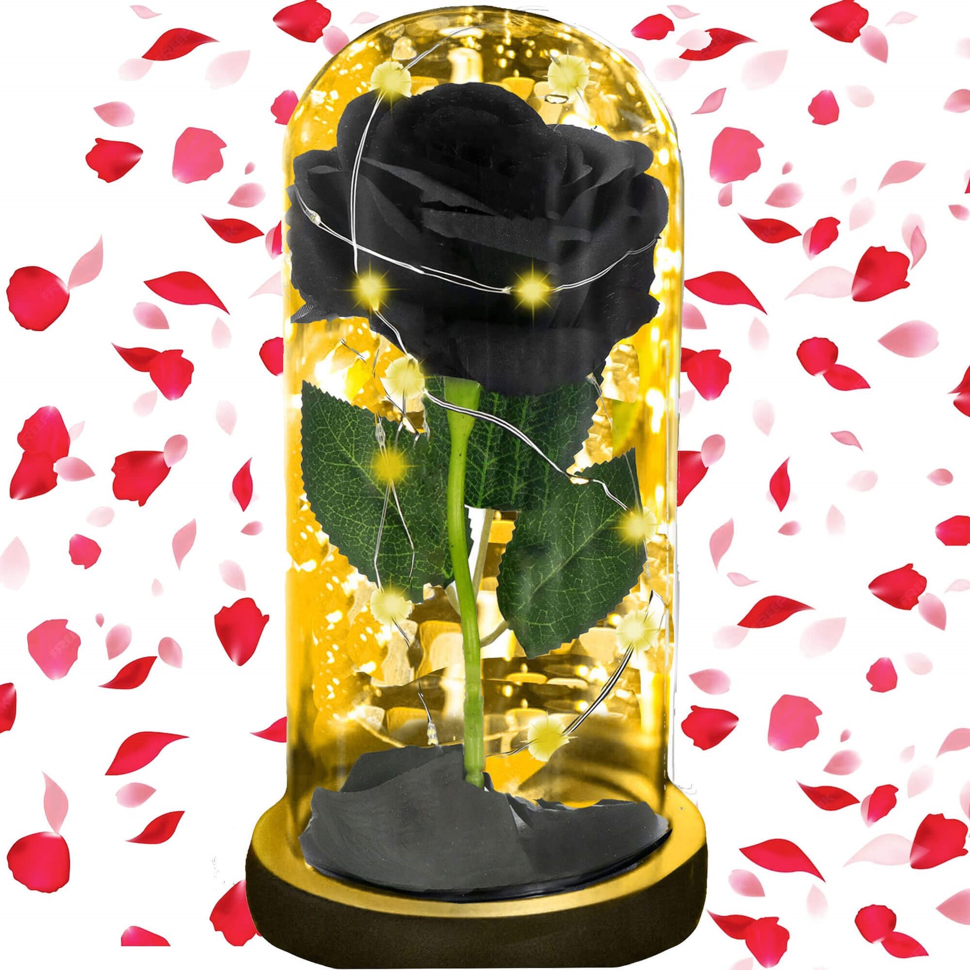 Elegantiška dekoratyvinė LED rožė stikliniame kupole – puiki dovana ar interjero akcentas, suteikiantis jaukumo ir prabangos įspūdį. Šilta balta nuolatinė šviesa subtiliai apšviečia juodą rožę, sukuria išskirtinį vizualinį efektą ir tinka naudoti tiek dieną, tiek vakare.