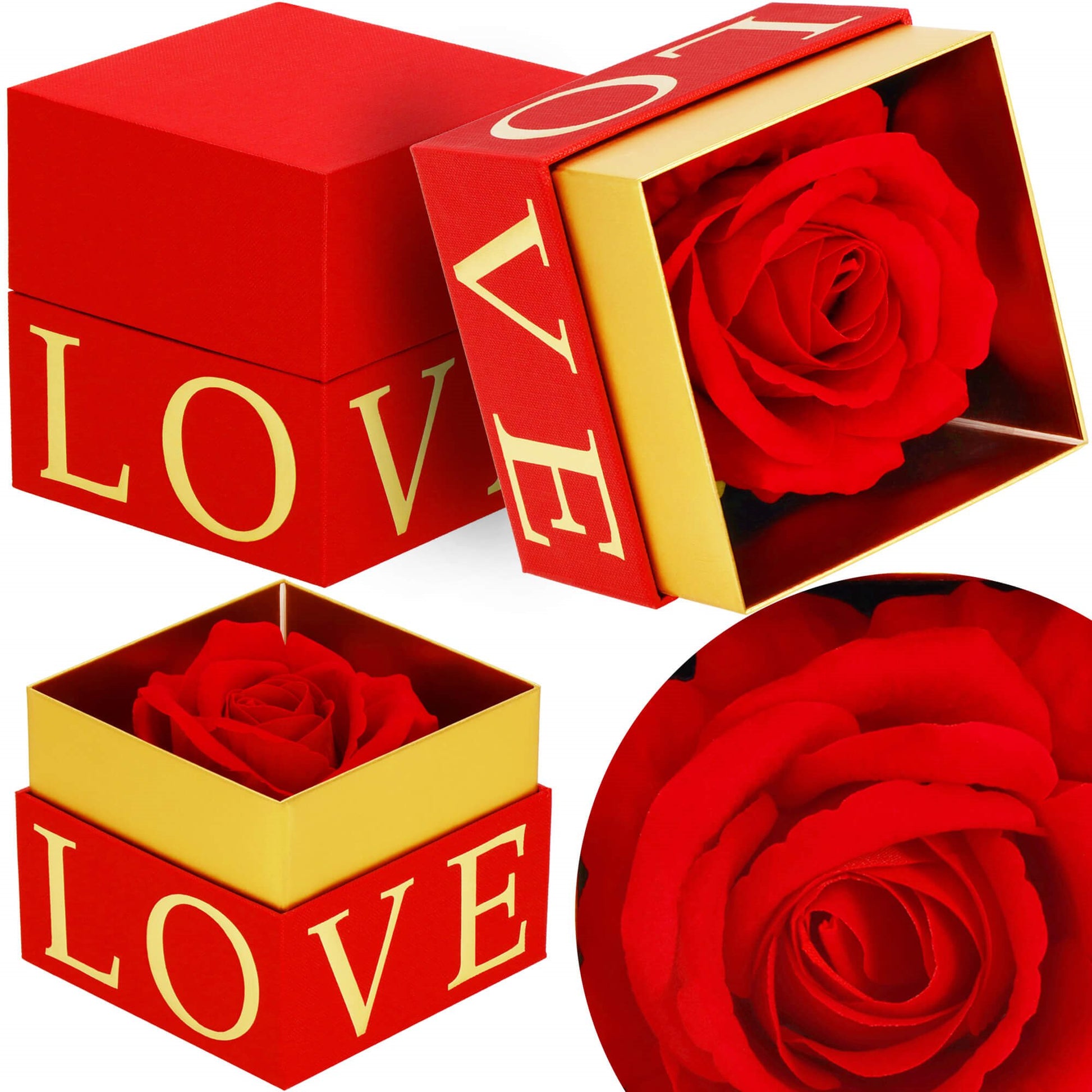 Rožė pritvirtinta prie minkšto pagrindo dėžutės viduje, tačiau turi nuėmimo funkciją, todėl prireikus ją galima išimti arba panaudoti dekorui kitaip. Dėžutė su dangteliu atrodo estetiškai ir yra visiškai paruošta dovanoti. Ši dovana idealiai tinka jubiliejams, gimtadieniams, Valentino dienai, vestuvėms ar kaip simbolinis dėmesio ženklas ypatingam žmogui.