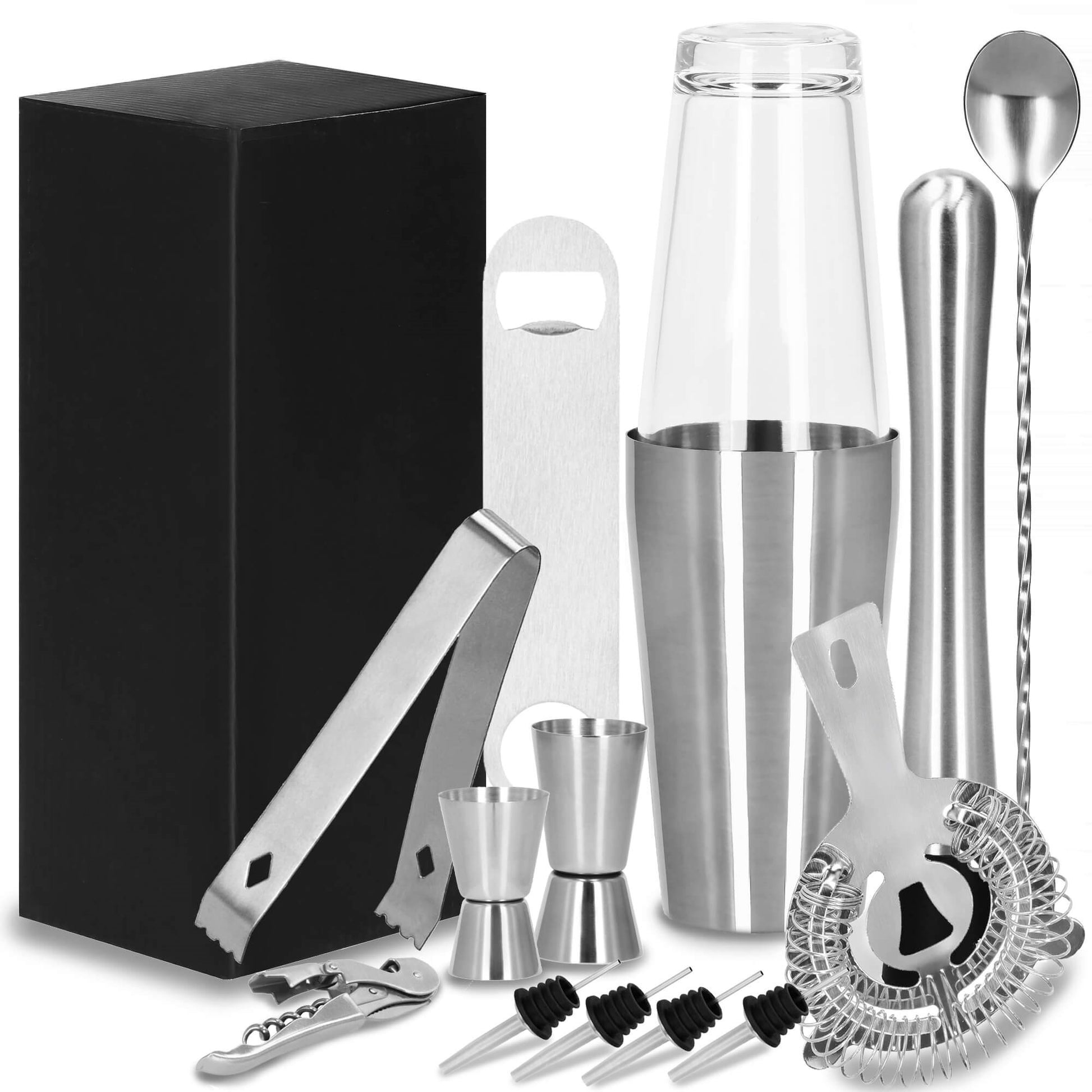 Barmeno rinkinys Bostono plaktuvas stiklinė KI0015 14 vnt. sidabrinis