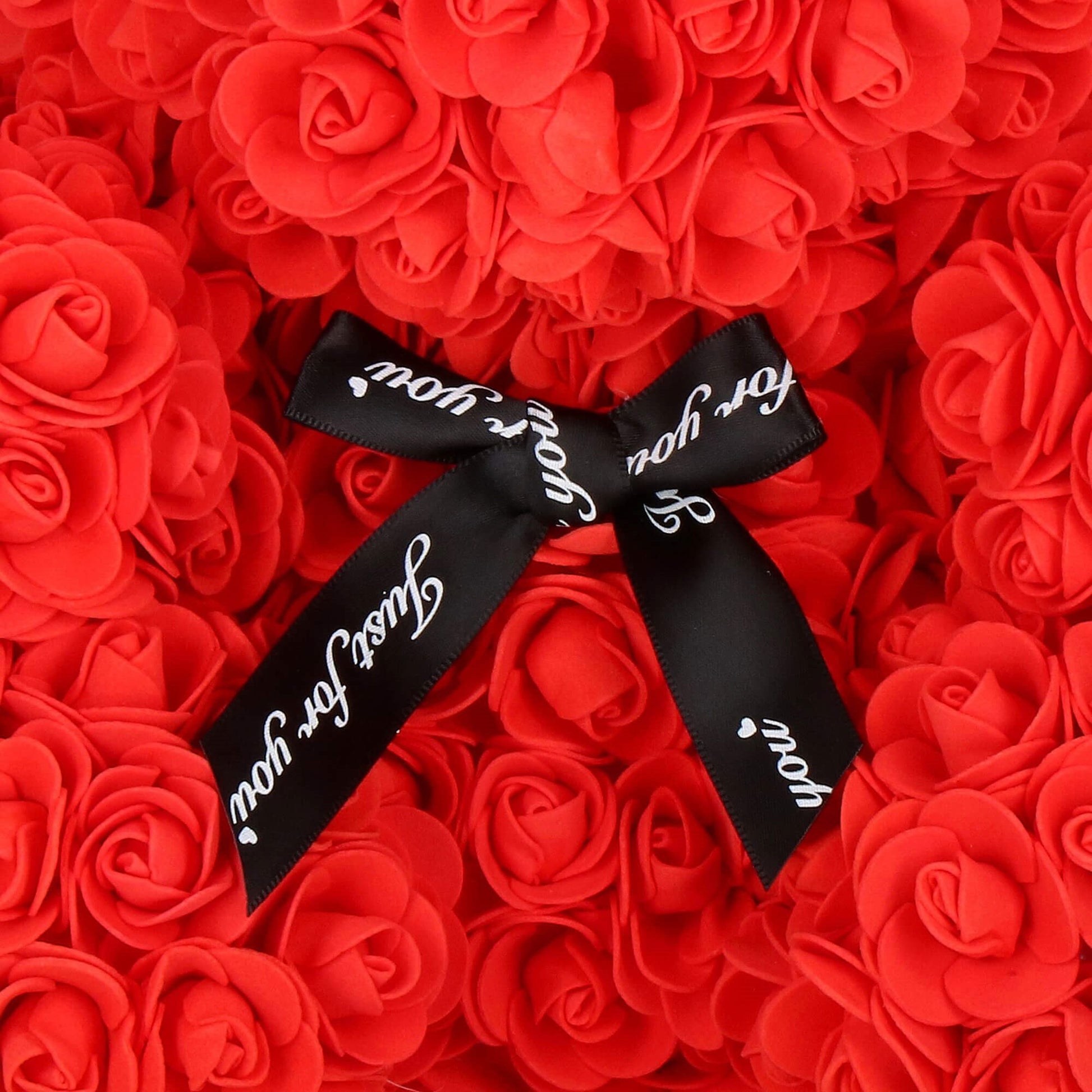 Meškiukų rinkinys – puiki dovana šventėms, sukurianti mielą ir įsimintiną įspūdį. Komplektą sudaro du meškiukai su dekoratyviniais lankais, supakuoti į raudoną pakuotę su juodos spalvos detalėmis. Meškiukai pagaminti iš lengvo putų plastiko, todėl tvirtai laikosi formos ir yra saugūs laikyti namuose ar dovanojimo metu.