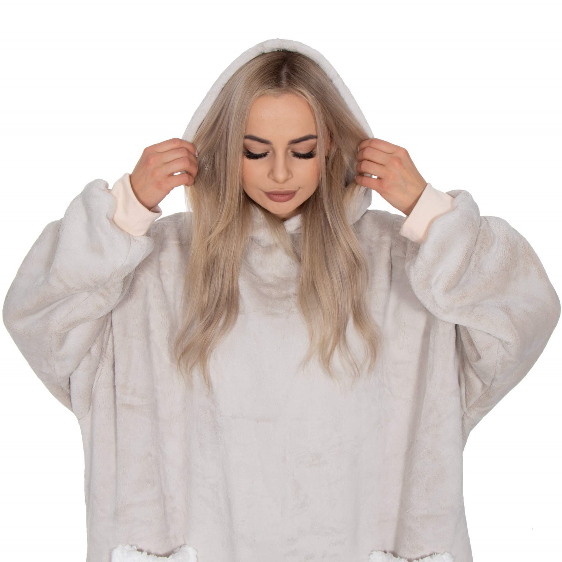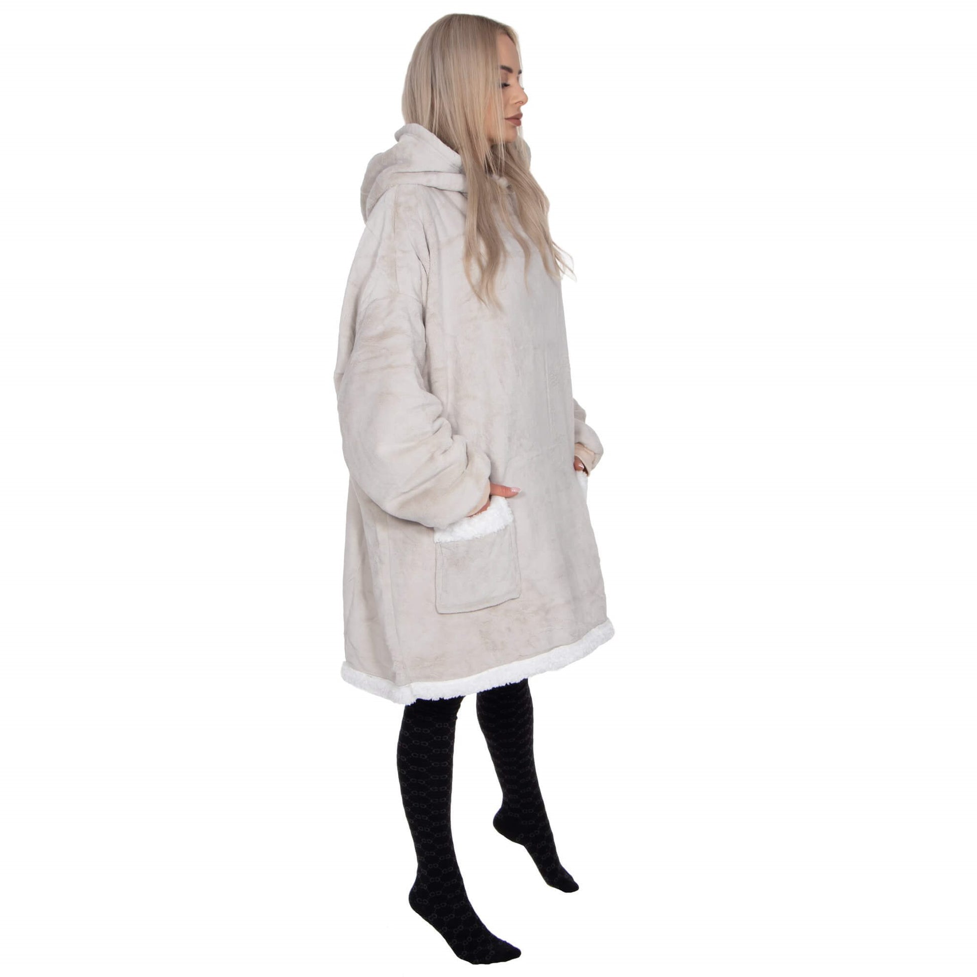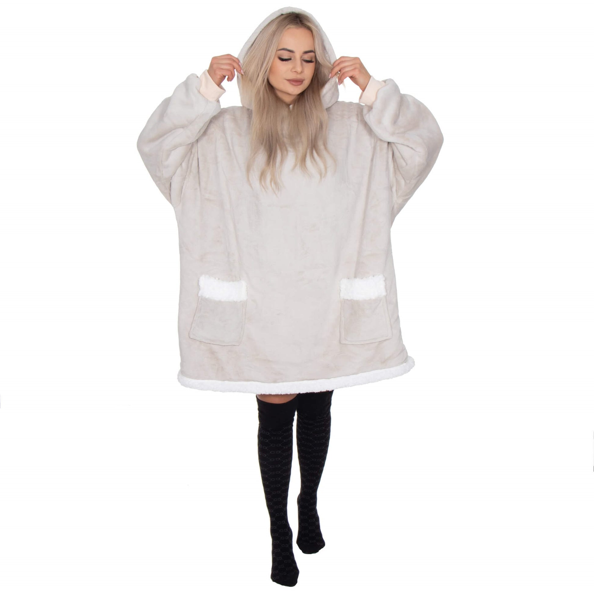Hoodie Blanket – šiltas megztinis–pledas, šviesiai pilka