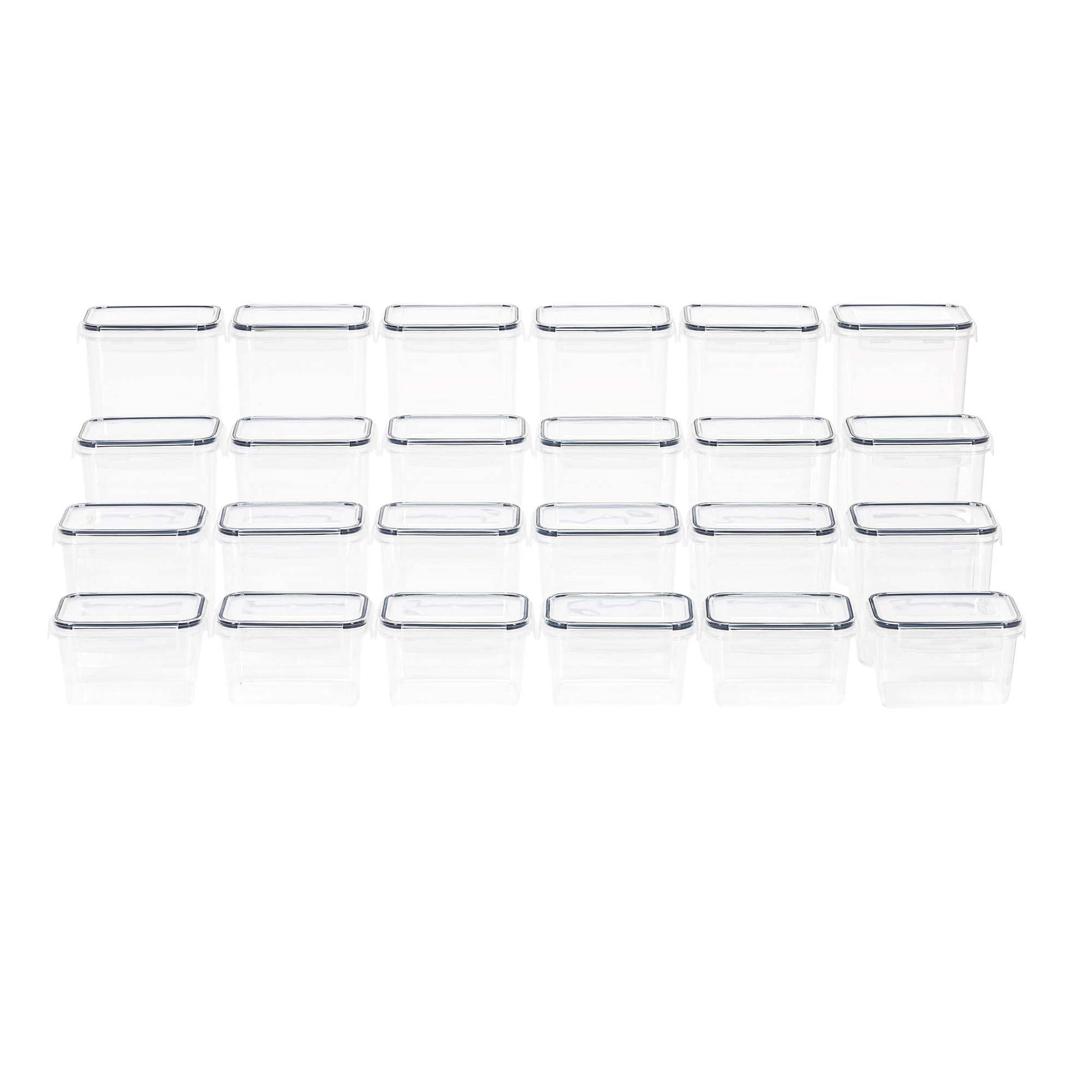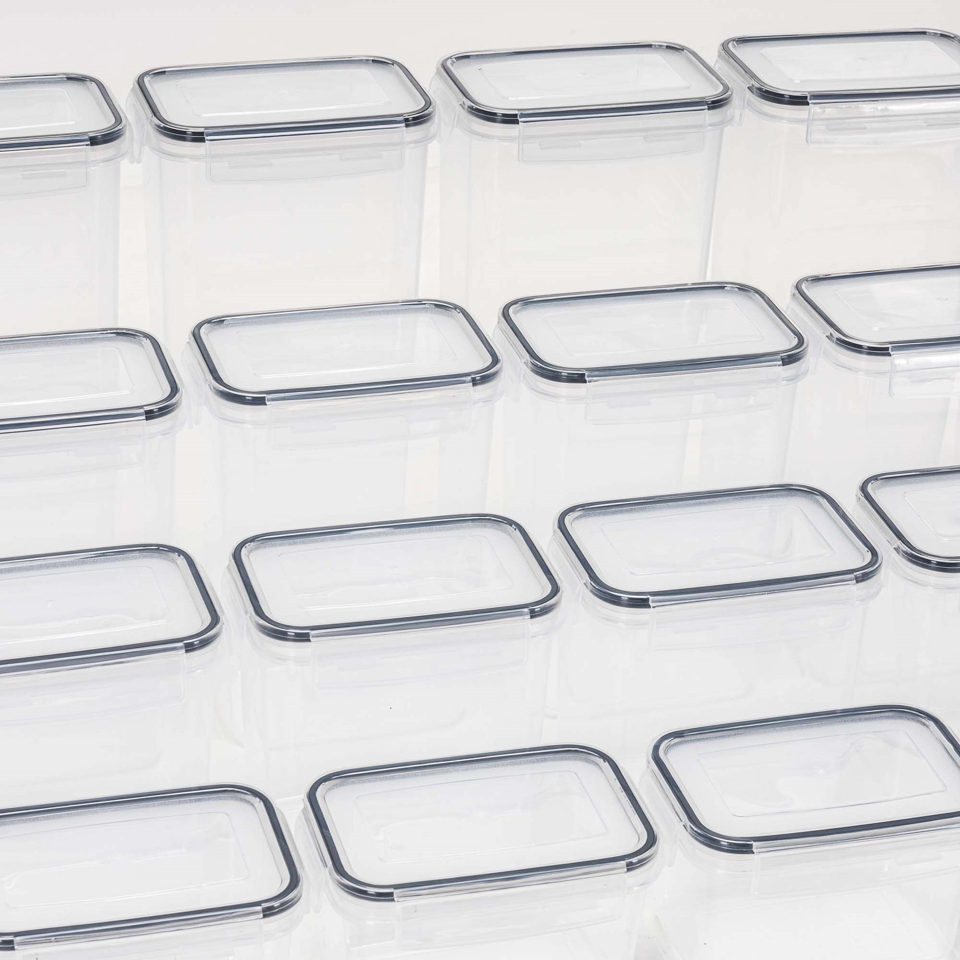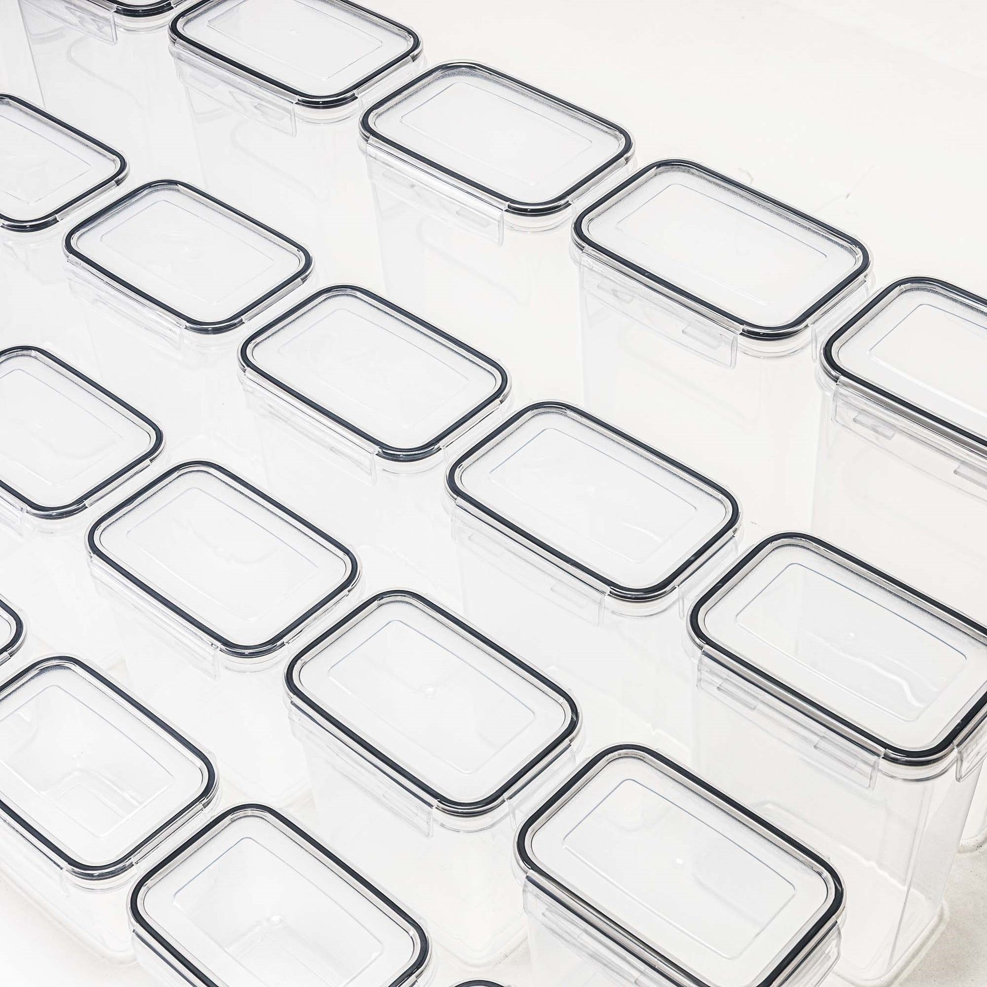 Šis funkcionalus maisto konteinerių rinkinys – puikus sprendimas tvarkingai ir patogiai virtuvei. Net 24 skirtingų dydžių indai leidžia laikyti įvairius produktus: kruopas, makaronus, miltus, cukrų, riešutus ar kitus sausus bei birius maisto produktus. Skaidrus dizainas padeda greitai matyti turinį, o sandarūs dangteliai apsaugo nuo drėgmės, oro ir nešvarumų.