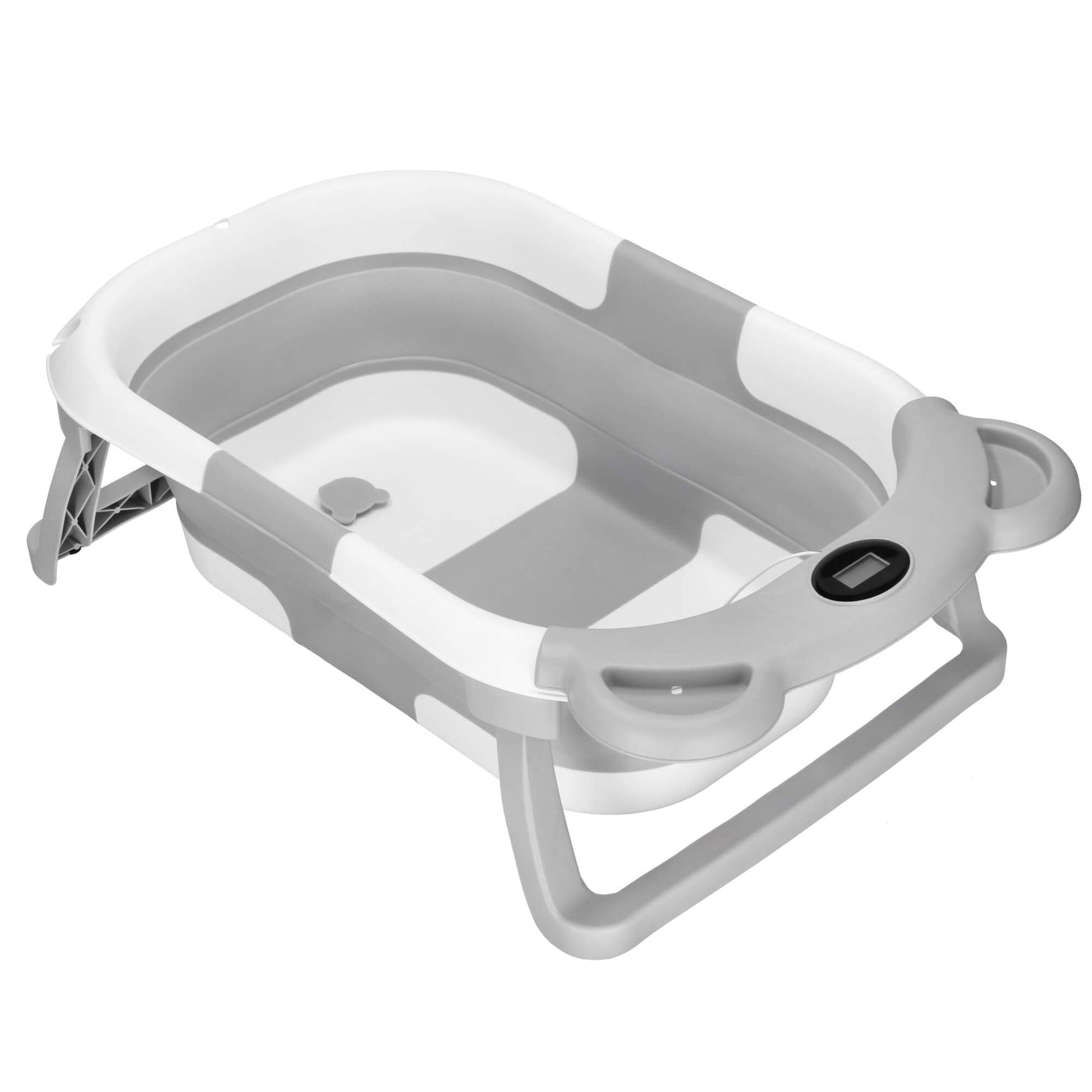 Kūdikio vonelė SB0062, silikoninė, su kamščiu ir termometru, 27,5 L, nešiojama, balta-pilka
