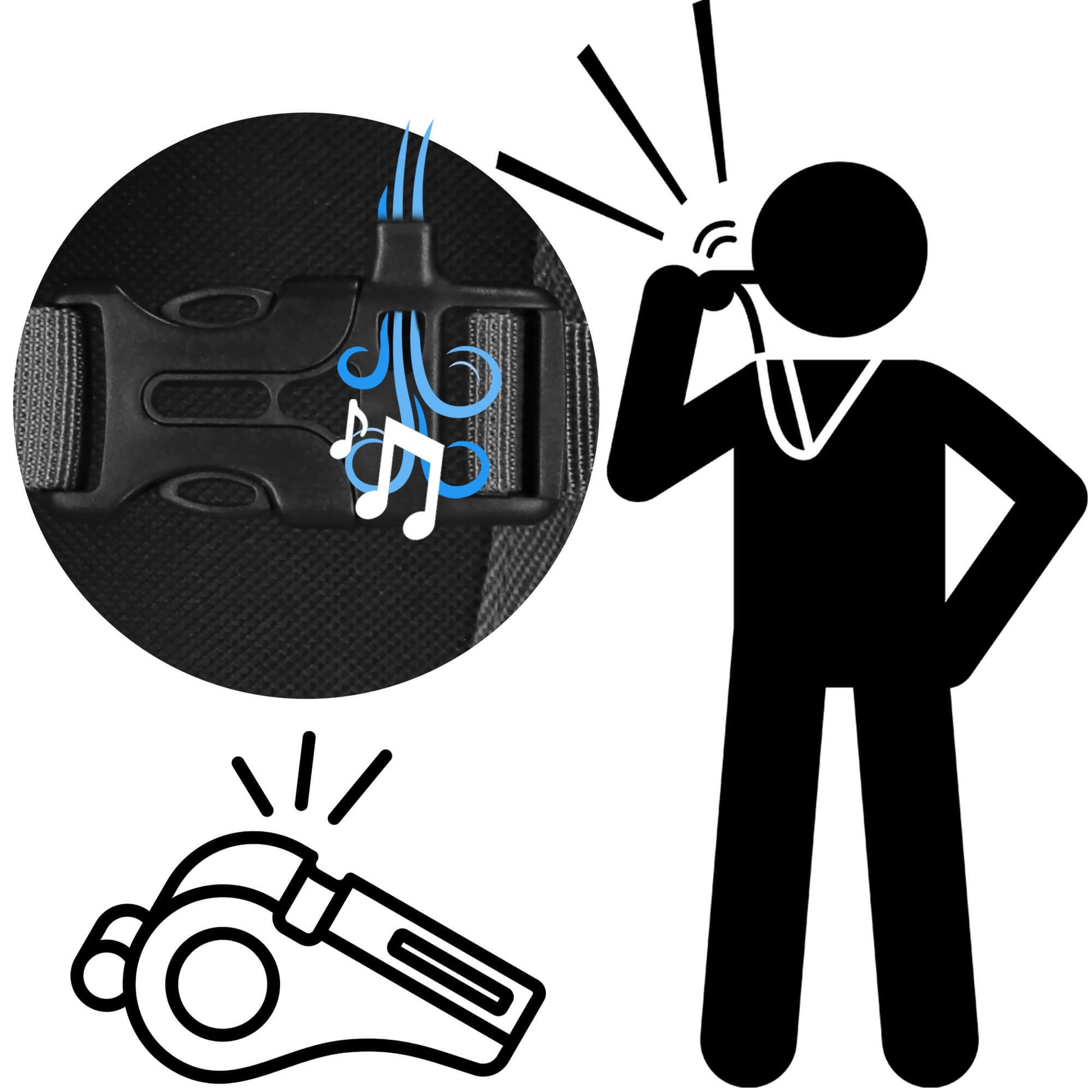 Komplekte: lietaus uždangalas + signalinis švilpukas ant krūtinės diržo