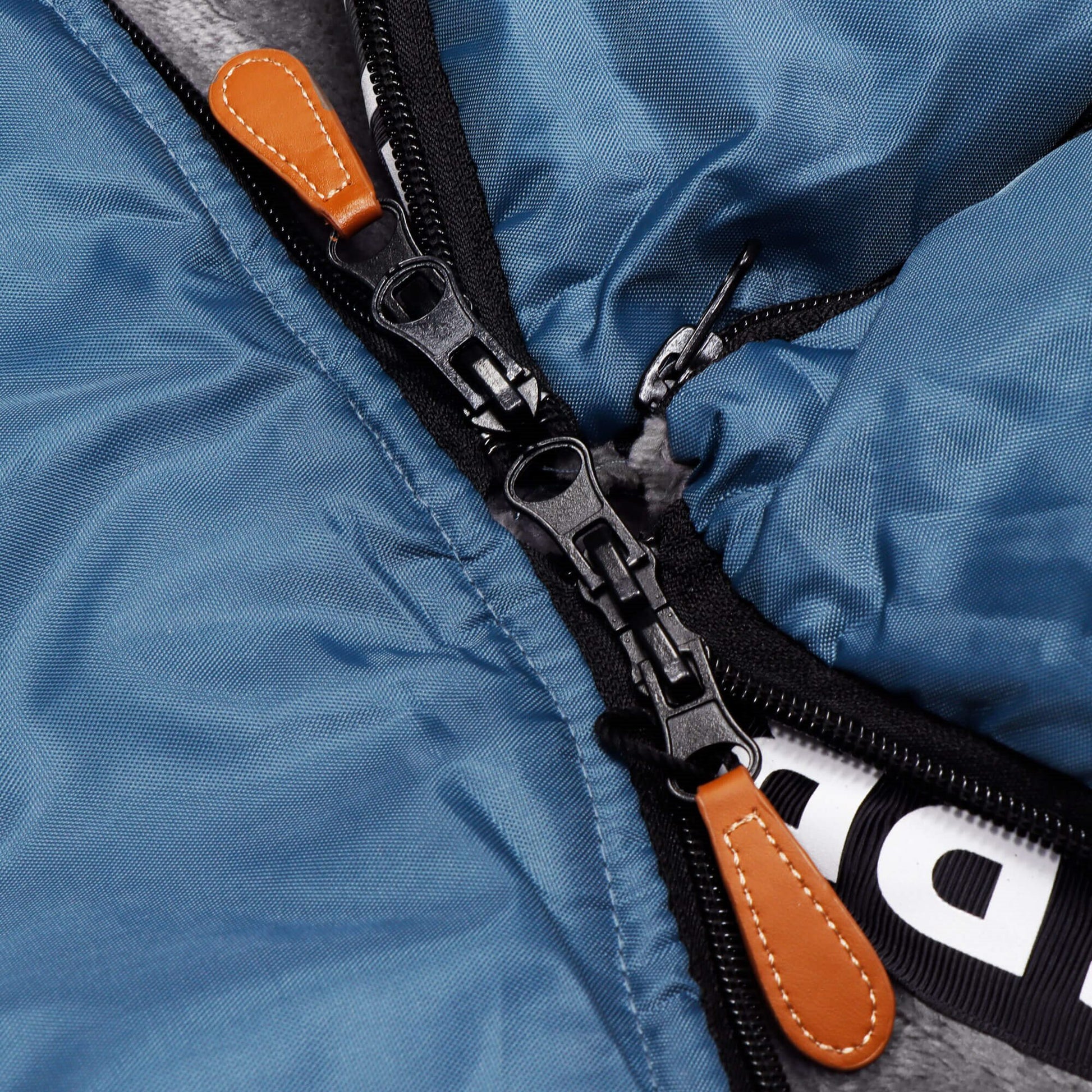 Miegmaišis priekyje viduryje užsegamas užtrauktuku, su dviem papildomais slankikliais (viršuje ir apačioje)