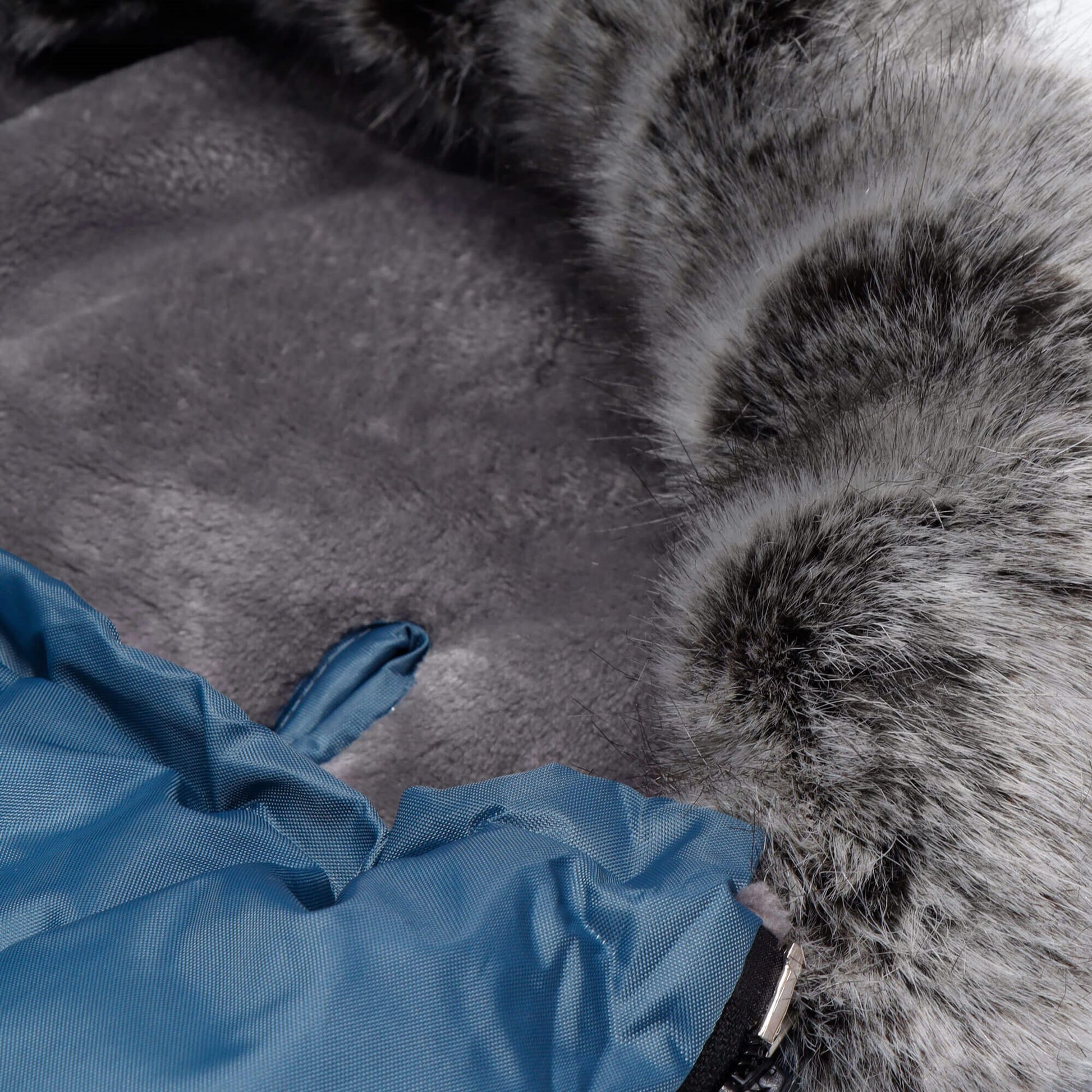 Nuimama kailinė apykaklė – pritvirtinta prie gobtuvo, juodos spalvos