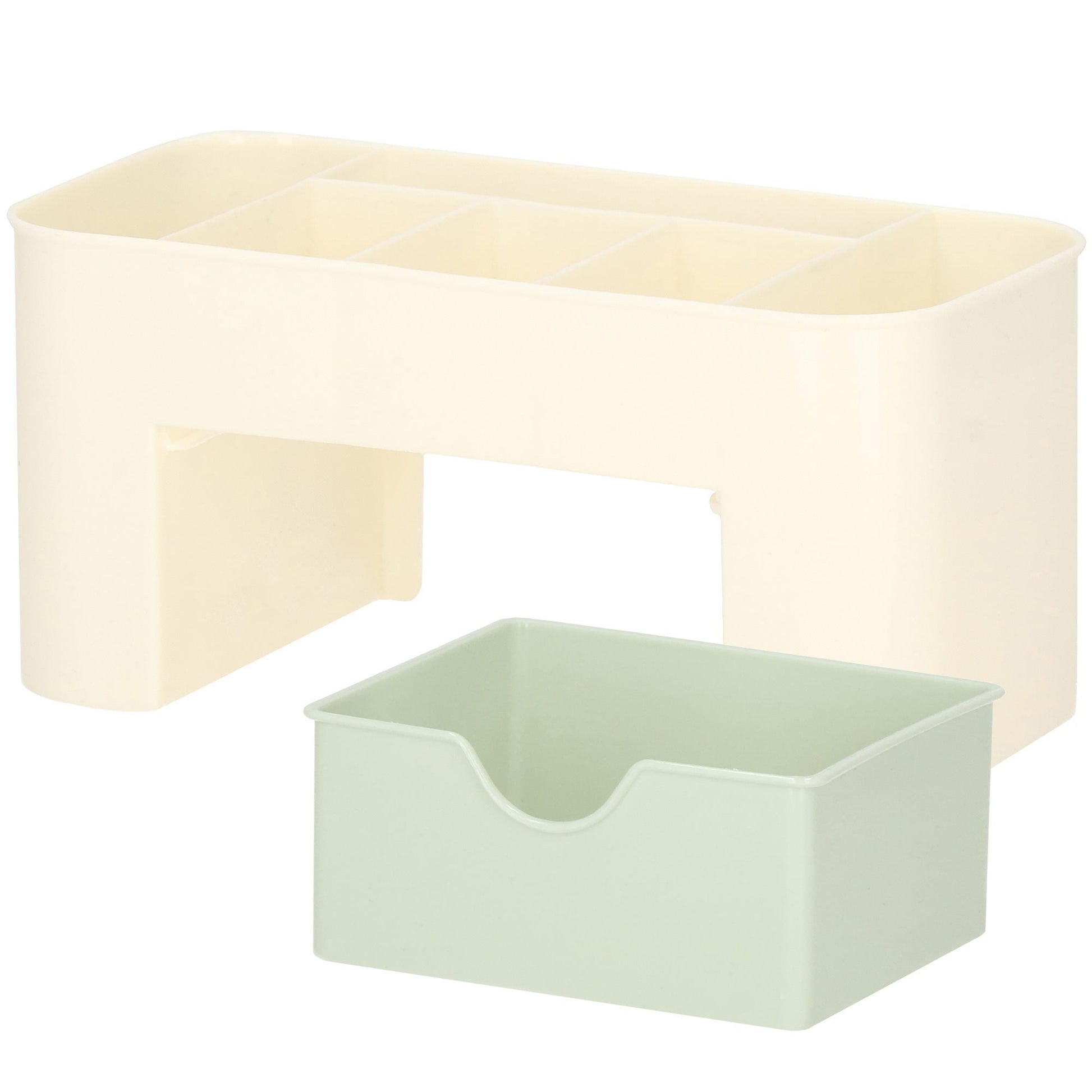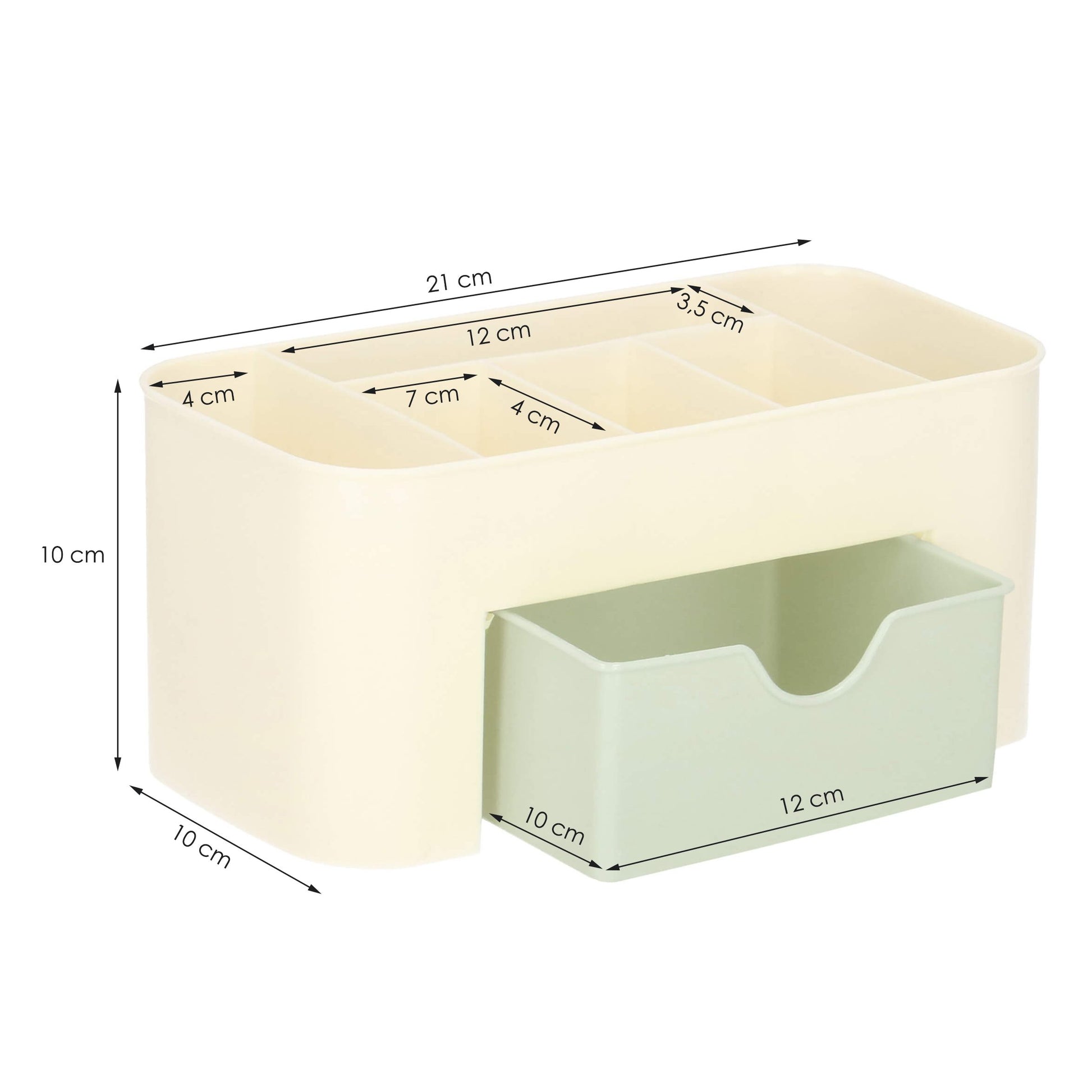 Patogus ir kompaktiškas makiažo dėklas padeda palaikyti tvarką kosmetikos priemonėse ir aksesuaruose. Dėl kelių skirtingo dydžio skyrių jis puikiai tinka teptukams, lūpų dažams, kremams ir smulkmenoms susidėti. Stilingos spalvos ir praktiška konstrukcija leidžia jį naudoti tiek namuose, tiek darbo vietoje.