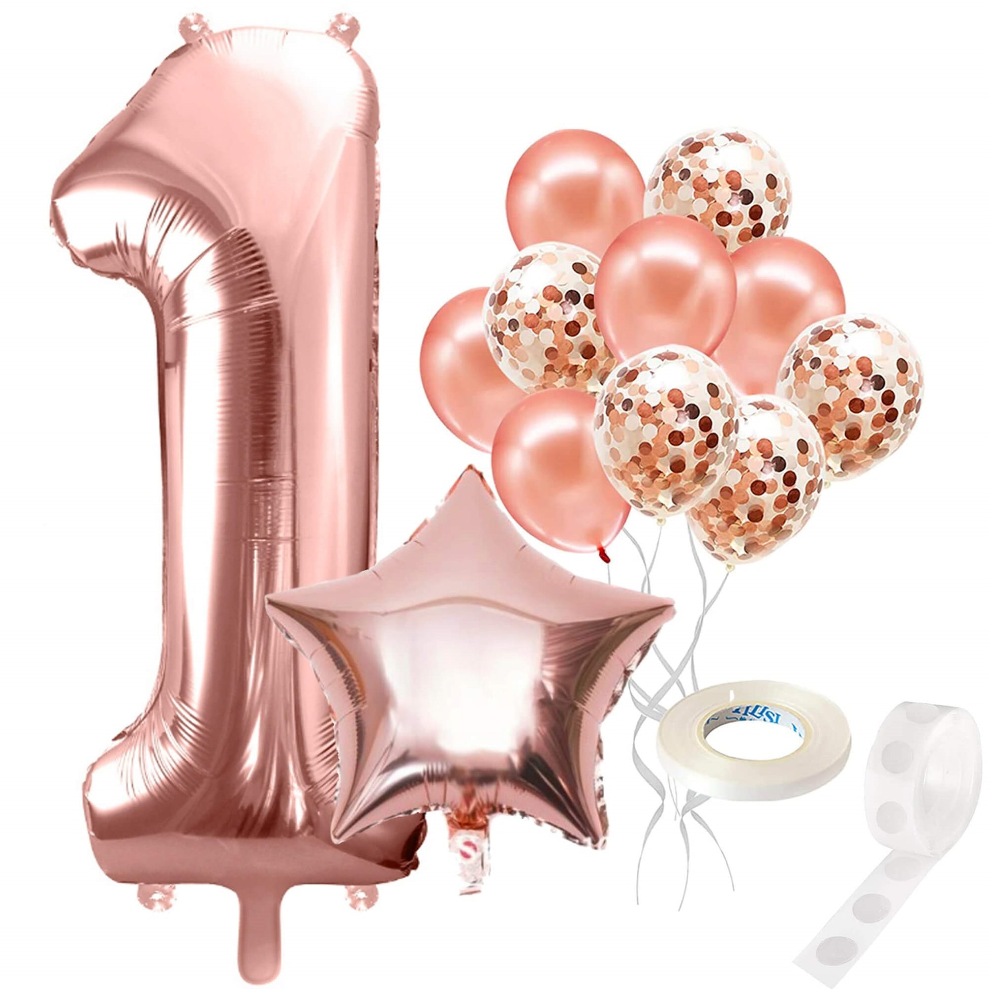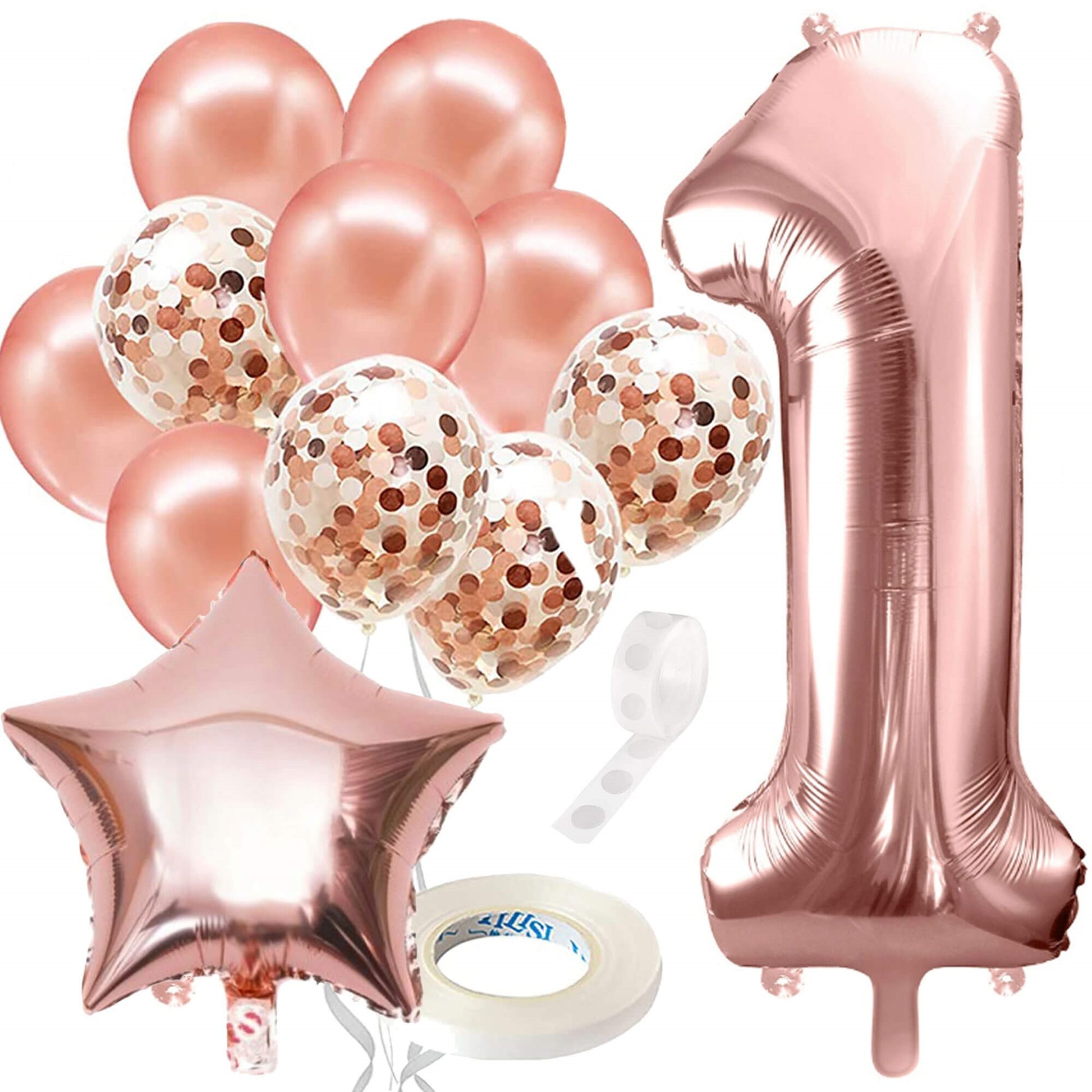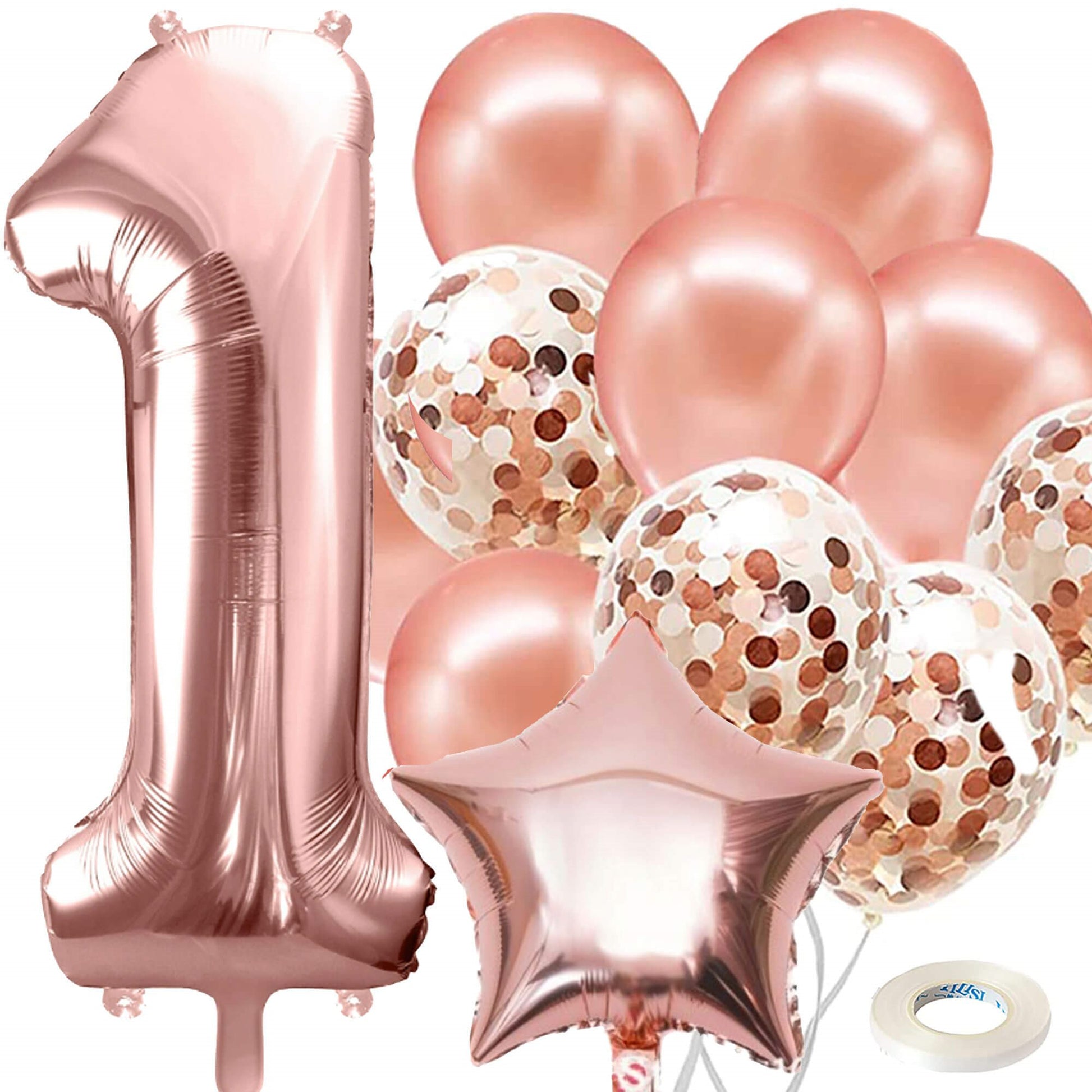 1-ojo gimtadienio dekoracijų rinkinys – rožinis / rožinis auksas (15 vnt.)
