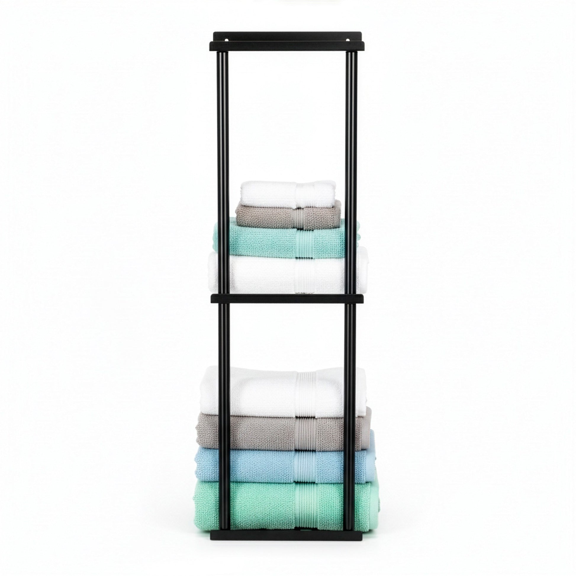 Šis juodas rankšluosčių stovas iš matinio metalo suteikia patogią vietą rankšluosčiams laikyti ir organizuoti vonios kambaryje. Tvirta konstrukcija užtikrina stabilumą, o minimalistinis dizainas dera prie įvairių interjerų. Stovas skirtas savarankiškam surinkimui.