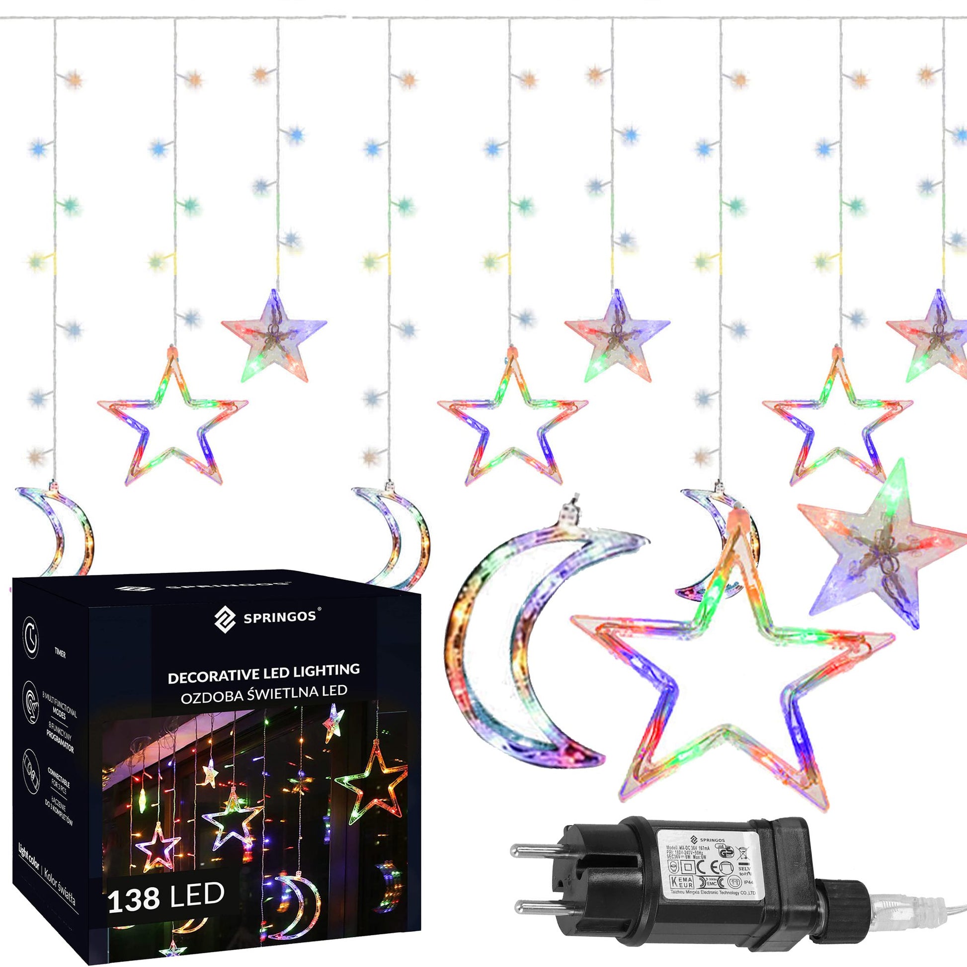 Šviesos užuolaidos 138 Led girlianda žvaigždės mėnuliai CL4135