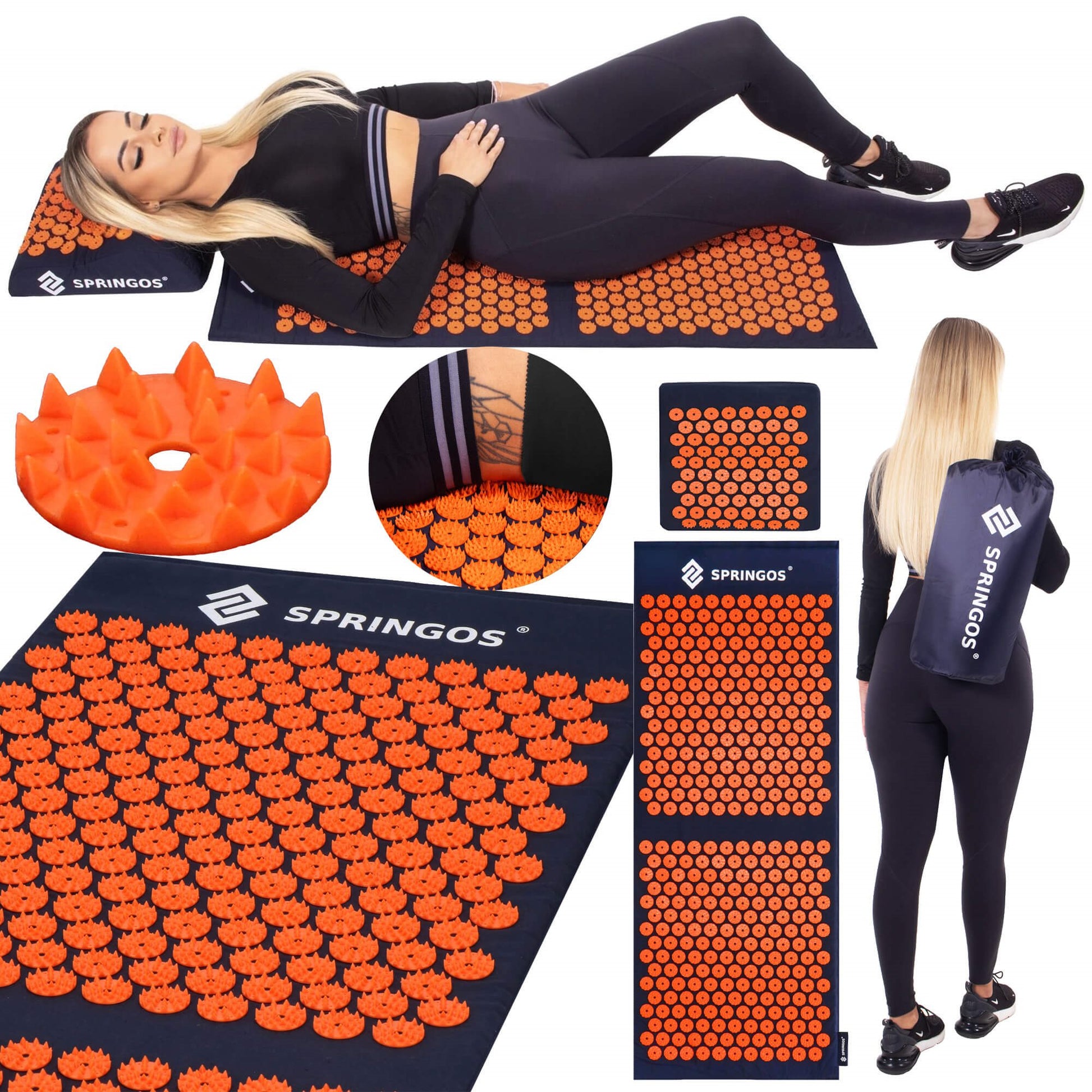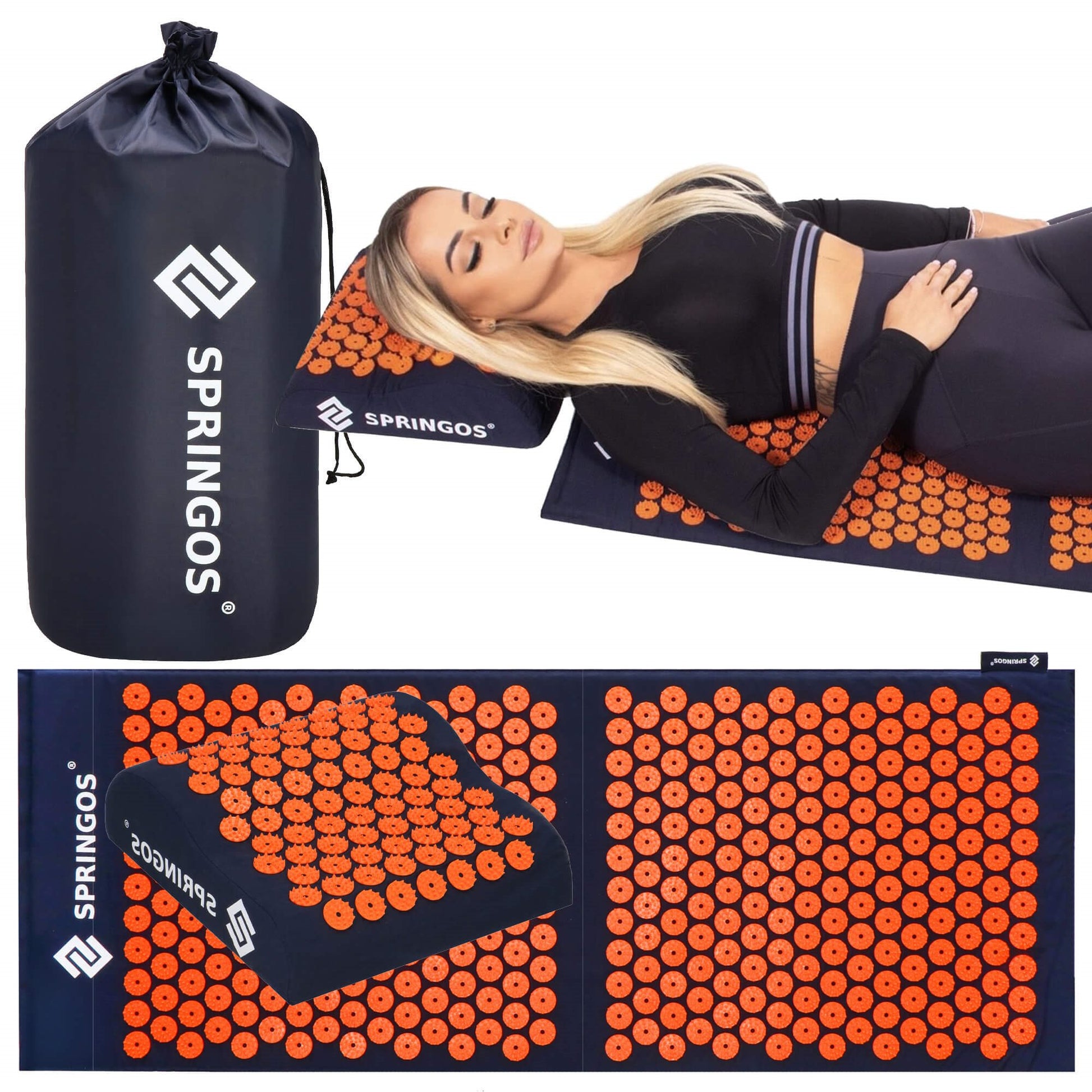 Akupresūros kilimėlis su pagalve – sukurtas visapusiškam raumenų atpalaidavimui ir gilesnei savijautos gerinimo rutinai. Dėl didesnio dydžio jis visiškai dengia nugarą, o speciali pagalvė suteikia komfortišką atramą kaklui ir pakaušiui.