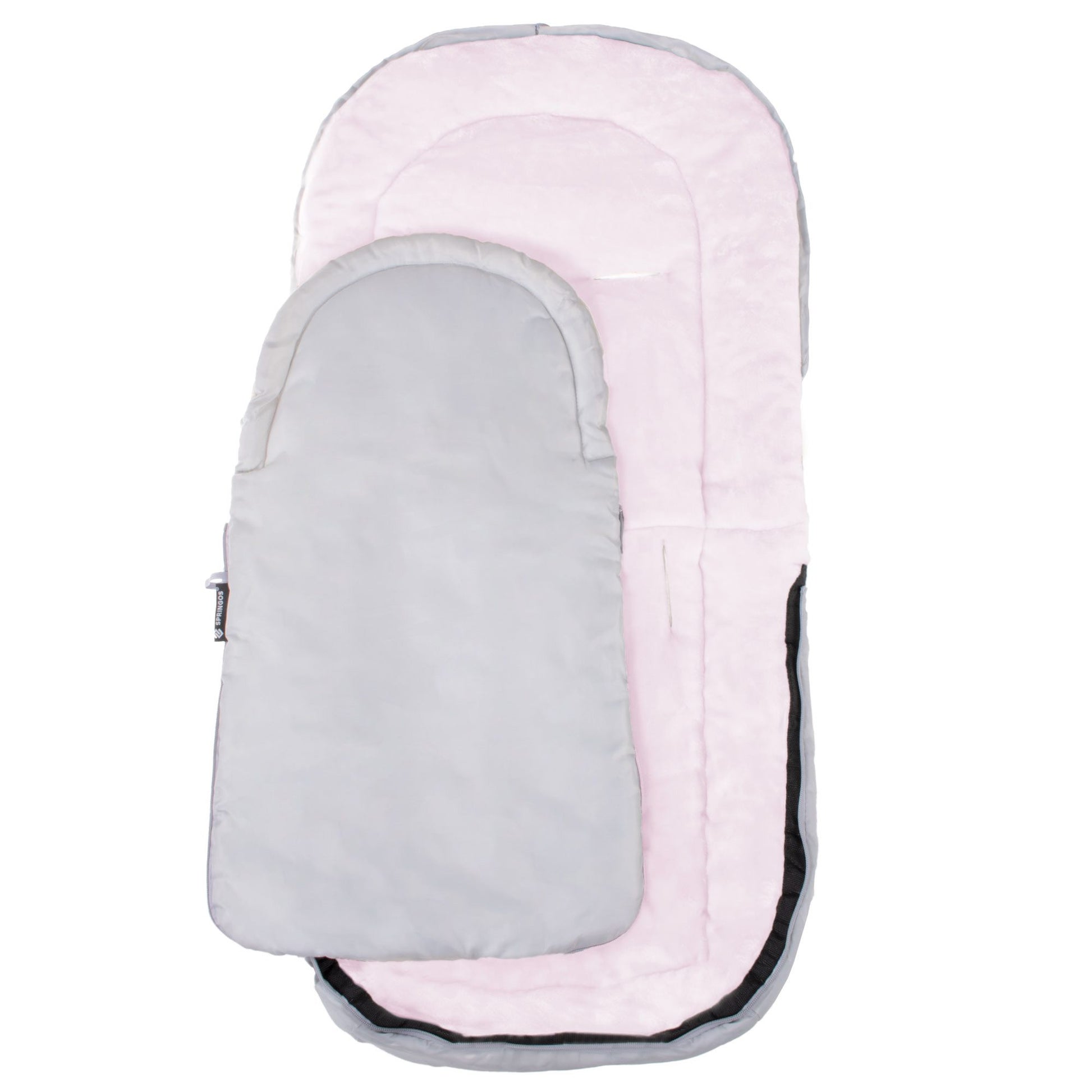 prekės Spalva pilkų atspalvių su rausva viduriu Išorinė medžiaga: vandeniui atspari ir kvėpuojanti 100% poliesteris Vidinė medžiaga: minkšta vilna Užpildas: poliesteris Visas ilgis; 90 cm Kūdikio antklodės ilgis: 65 cm Plotis plačiausioje vietoje: 43 cm plotis siauriausioje vietoje: 35 cm Galimybė pritvirtinti diržą dėl tvirtinimo angų galima naudoti vežimėliuose, gondolose, vaikiškuose vežimėliuose ir rogutėse maišytuvą